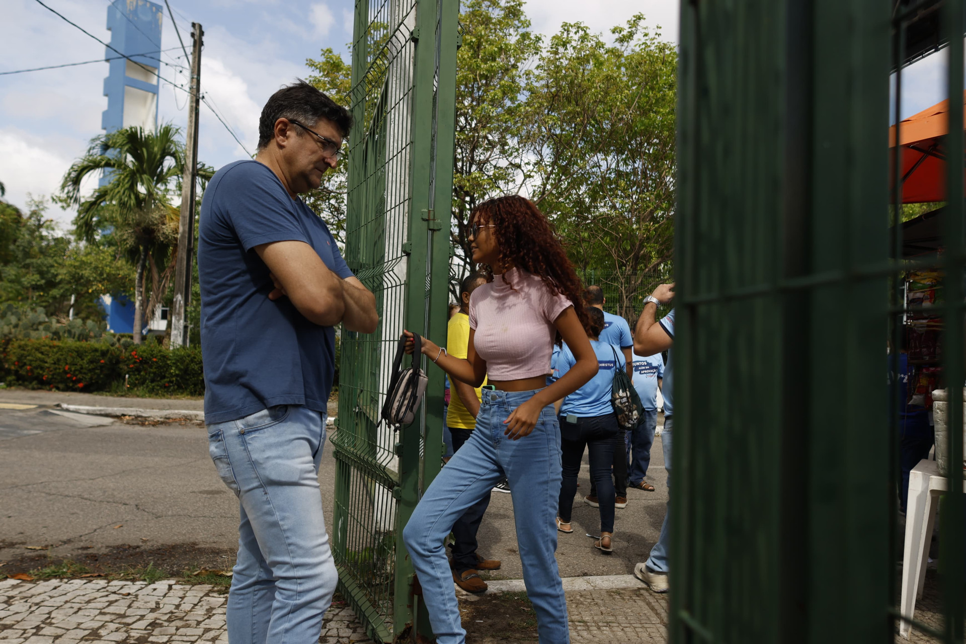 Neste mesmo horário, equipes de escolas particulares se posicionavam para recepcionar os estudantes. Marcelo Mota, coordenador pedagógico do colégio Ari de Sá, tinha a expectativa de receber mais de 150 estudantes neste domingo.