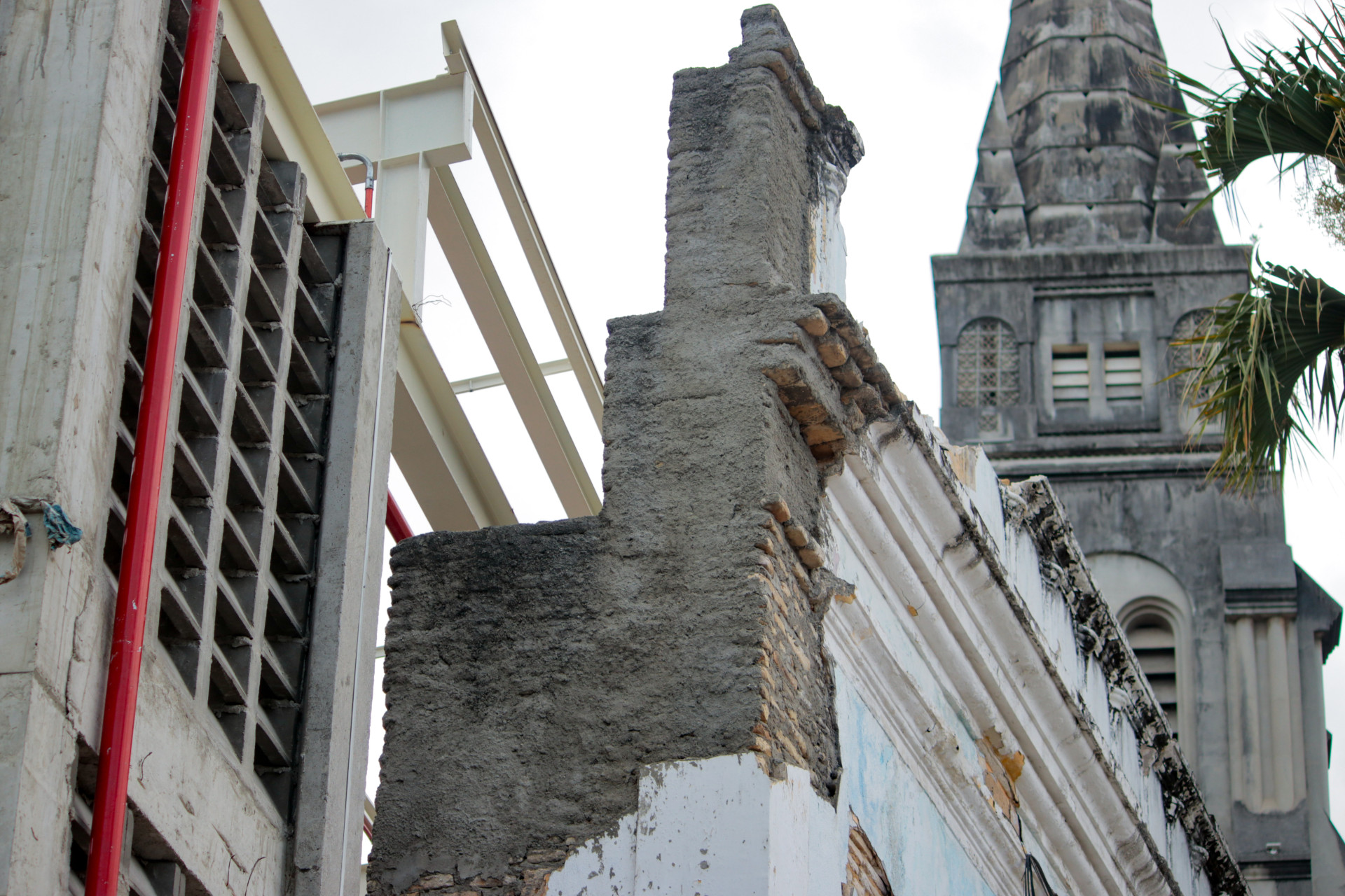 De acordo com a Madri Engenharia, empresa responsável pela obra do bem histórico, a derrubada da parede se fez necessária devido a danos causados pelas chamas e desgastes oriundos da exposição à chuva.
