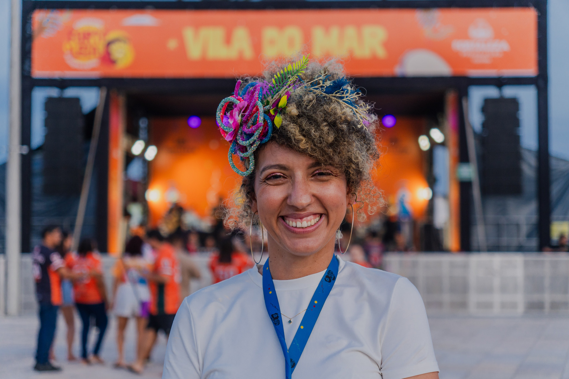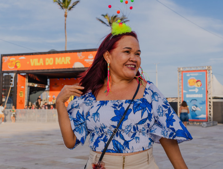 Usando uma tiara colorida, Ivanira relatou ter o costume de visitar o Vila do Mar com marido e filhos. Desta vez, o que estava diferente era o clima de festa perto de casa. Ela contou ser uma “coroa do Carnaval”; apontou para o próprio braço e disse: “Tá no sangue. Estou na folia todo ano”.