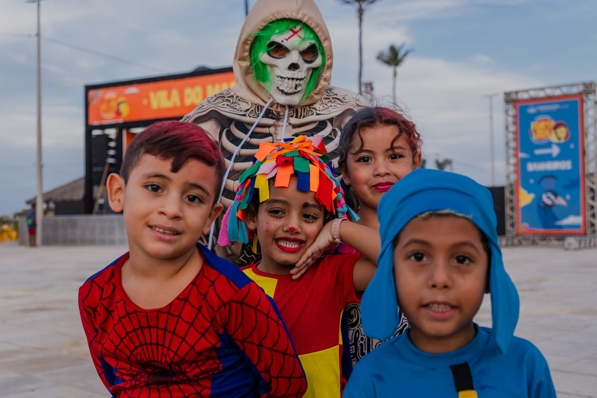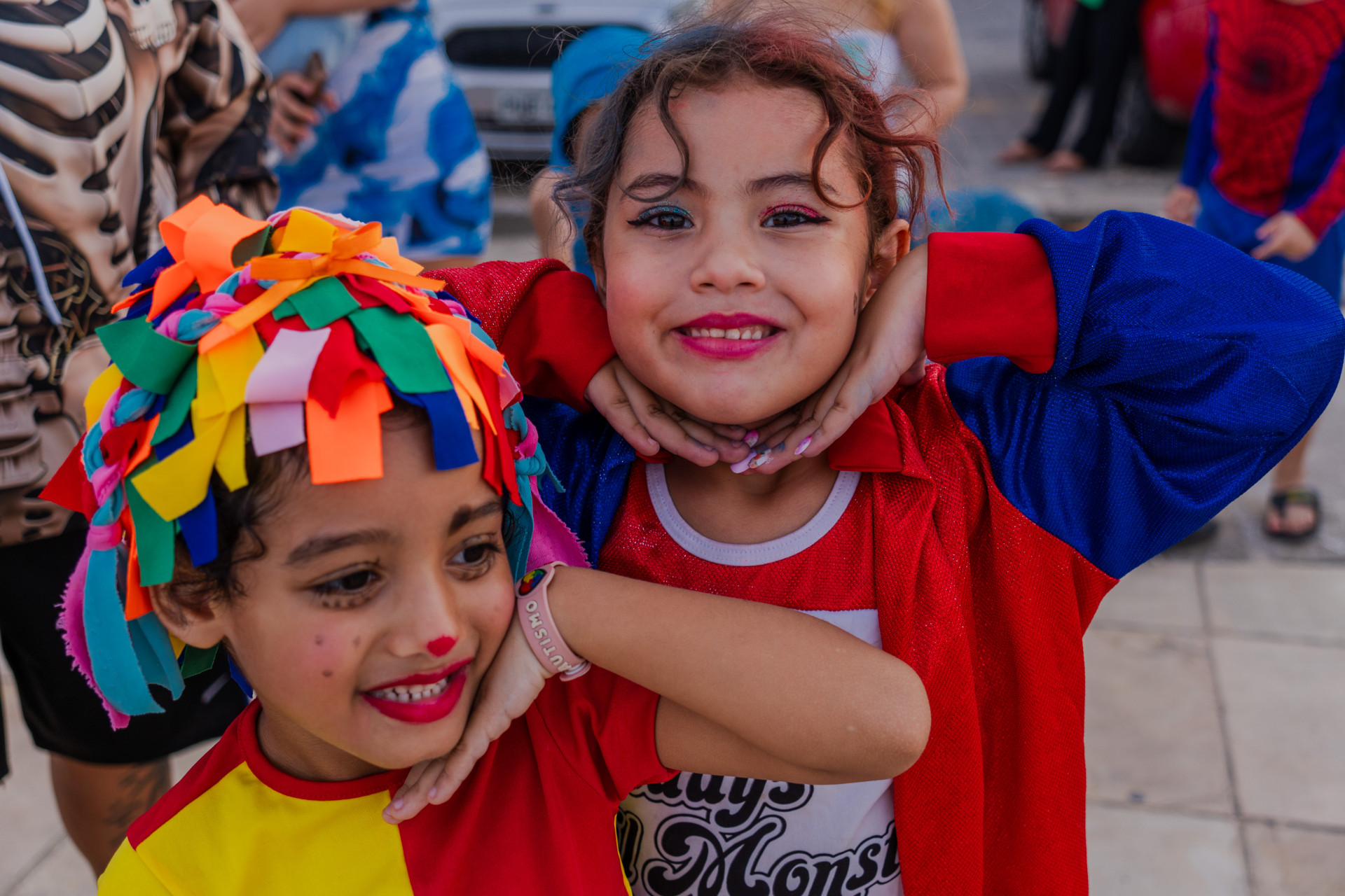 Fantasia não é problema para a família de Islândia Sales, 54. Vestida de “caveira”, ela apontou para as quatro crianças que a acompanhavam, de netos a sobrinhos: tinha Harley Quinn, Pocoyo, Homem-Aranha e a boneca Emília, do "Sítio do Pica-Pau Amarelo".