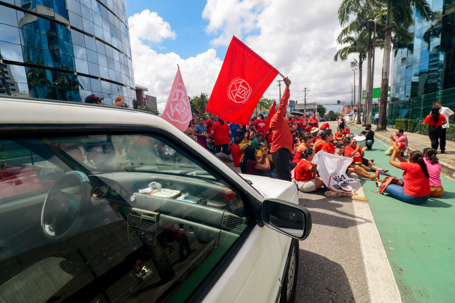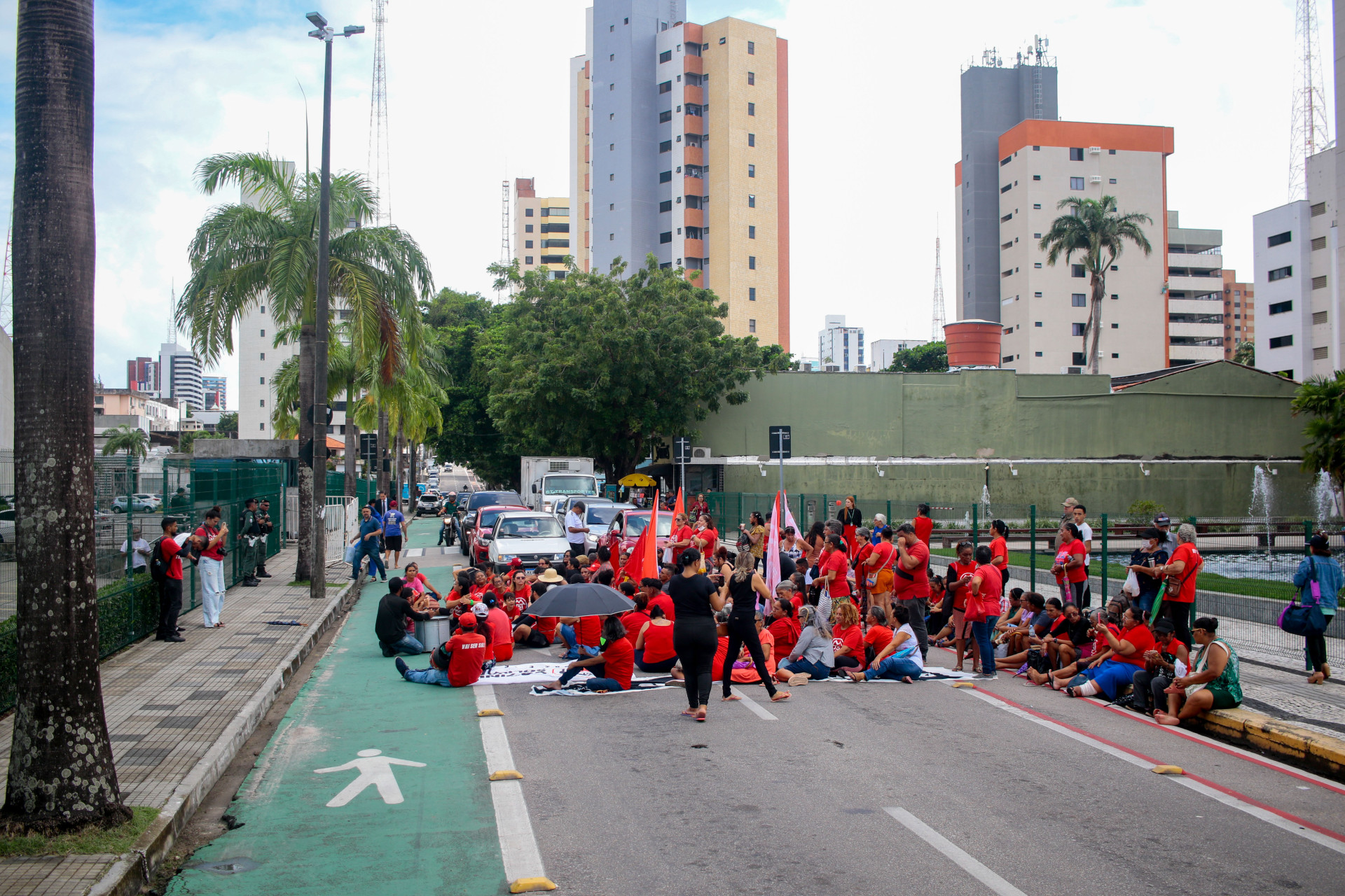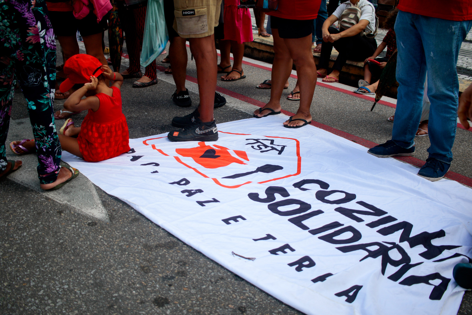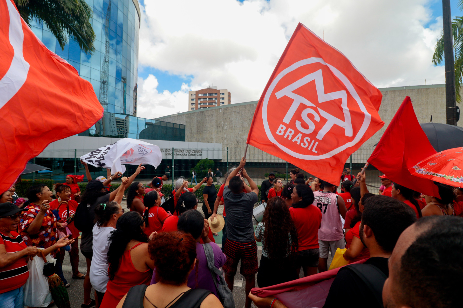 Integrantes do Movimento dos Trabalhadores Sem Teto (MTST) e do programa Cozinha Solidária protestaram em frente à Assembleia Legislativa do Ceará (Alece) nesta terça-feira, 25. Ação reivindicava a redução no preço de alimentos e propunha a realização de feiras e bancos de alimentos como forma de reduzir os custos.