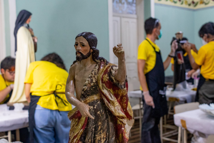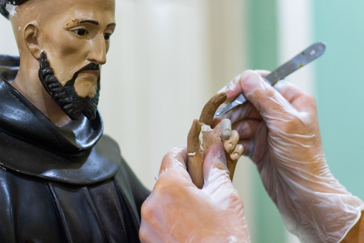 Alunos de escola de artes restauram esculturas sacras antigas