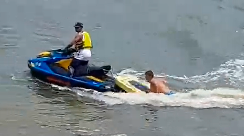 O resgate foi realizado por equipe de guarda-vidas, com ajuda de uma moto aquática, no último domingo, 13