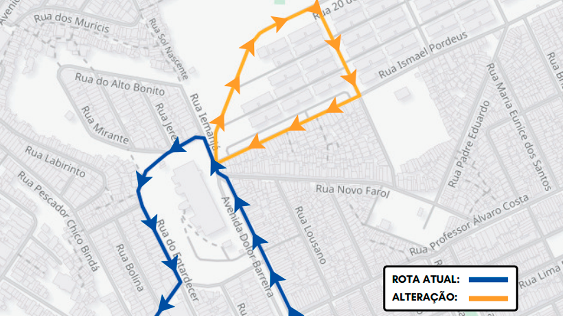 O novo trajeto vai incluir a avenida Dolor Barreira, Rua um (Leste-Oeste e Norte-Sul, no Conjunto Alto da Paz), rua Ismael Pordeus e rua Estrela do Oriente.