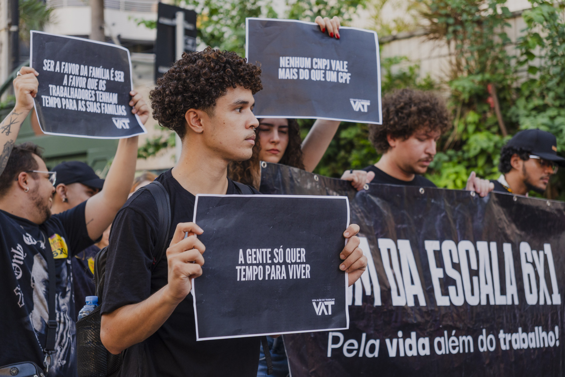 "Esta é a principal pauta deste ato de hoje. Essa escala 6x1 é uma escala exploratória... neste dia de folga não dá pra descansar, o trabalhador tem comprar alimento, comprar remédio, cuidar dos filhos... Então, a gente está lutando para dar mais este passo na luta histórica dos trabalhadores", explica Gabriel.