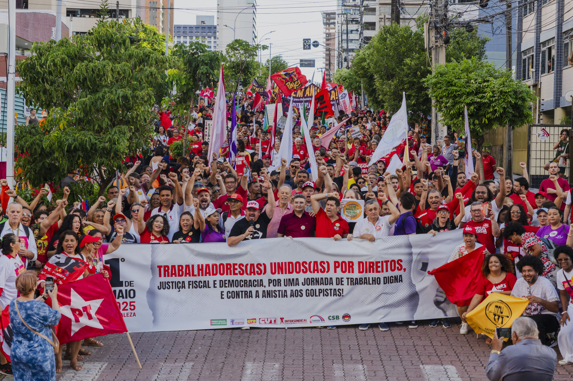 O ato unificado das centrais sindicais e movimentos populares acontece na tarde desta quinta-feira, 1°, Dia do Trabalhador, em Fortaleza, para reivindicar pautas de várias categorias.