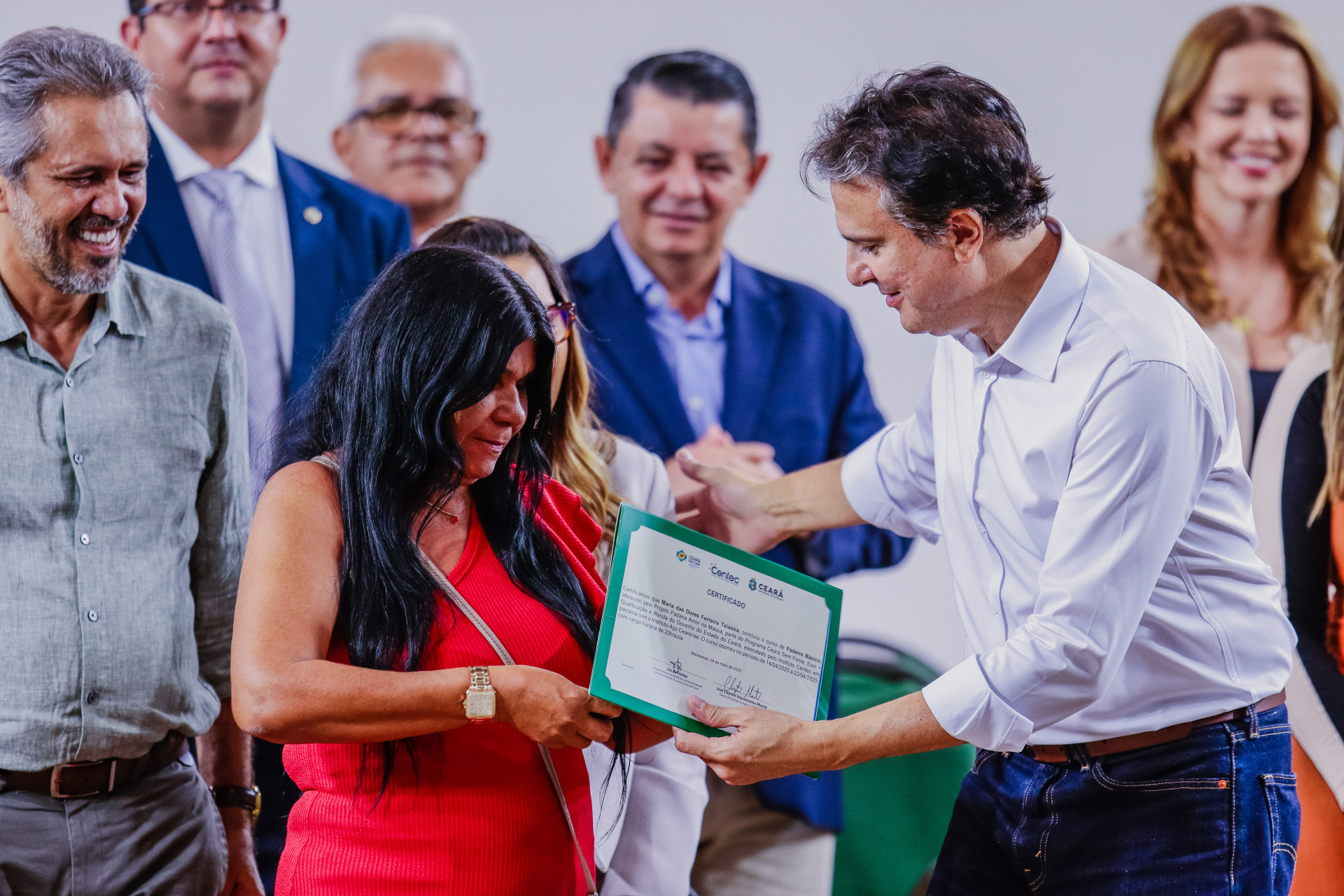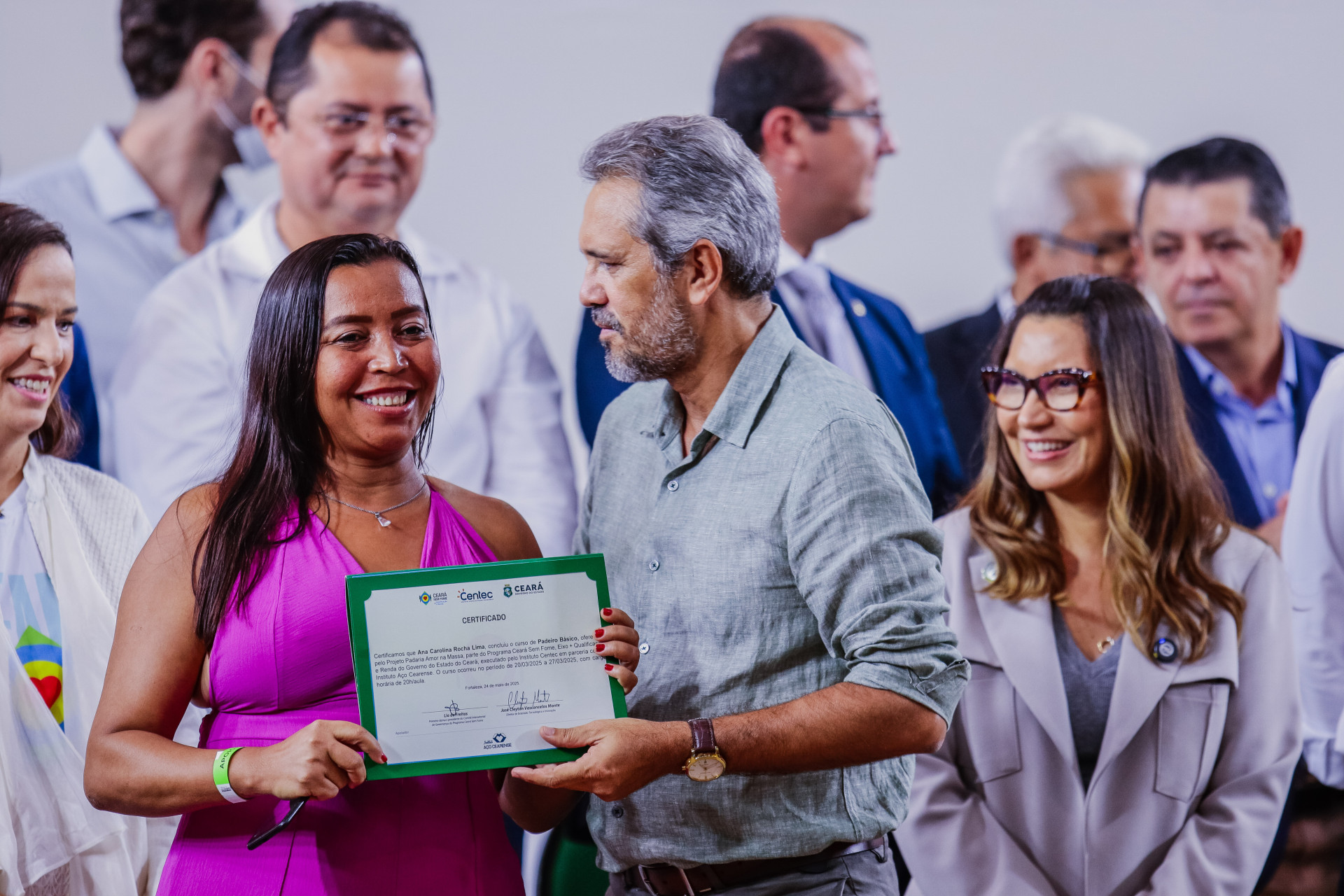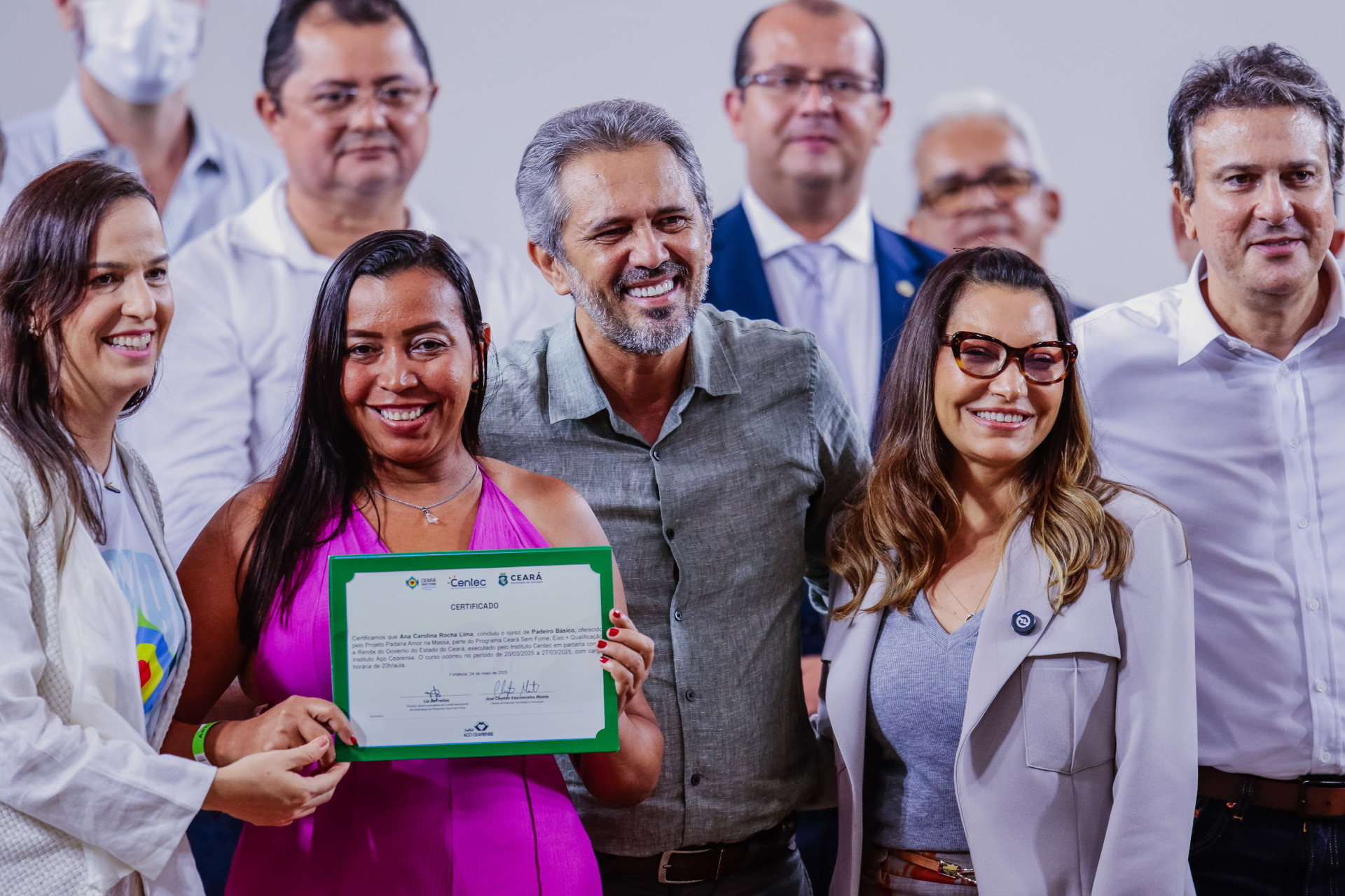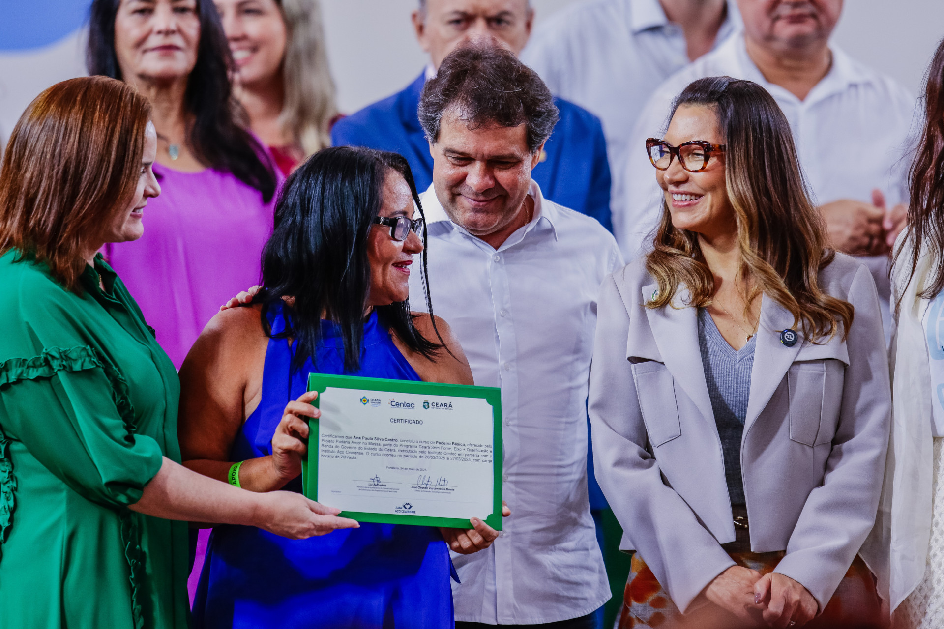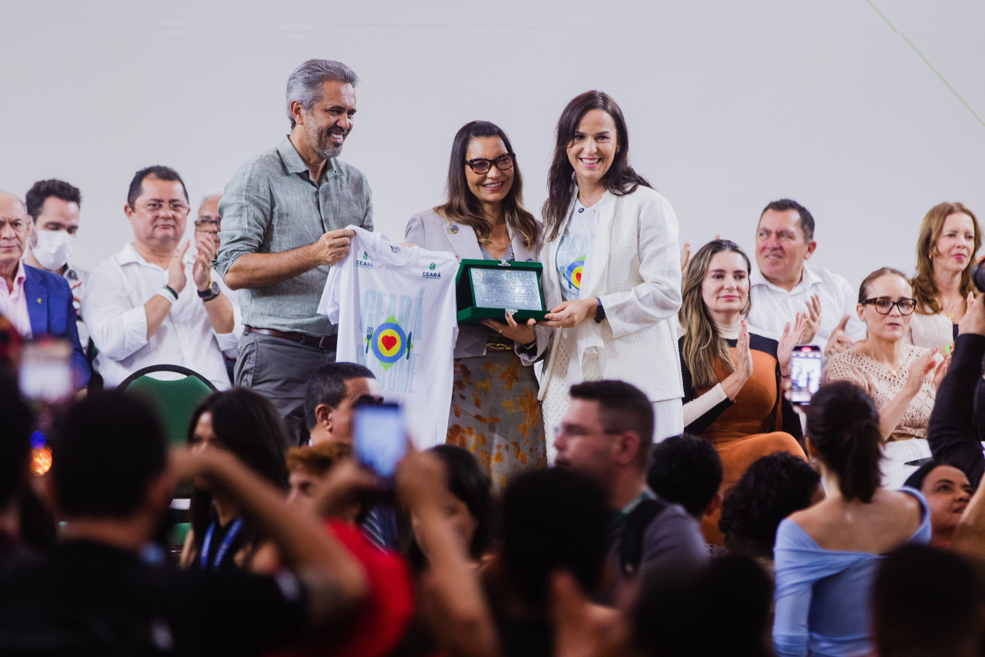 Antes da entrega dos certificados, Janja recebeu no palco a placa de Embaixadora do Ceará sem Fome, programa que acontece dentro do eixo +Qualificação da política estadual.