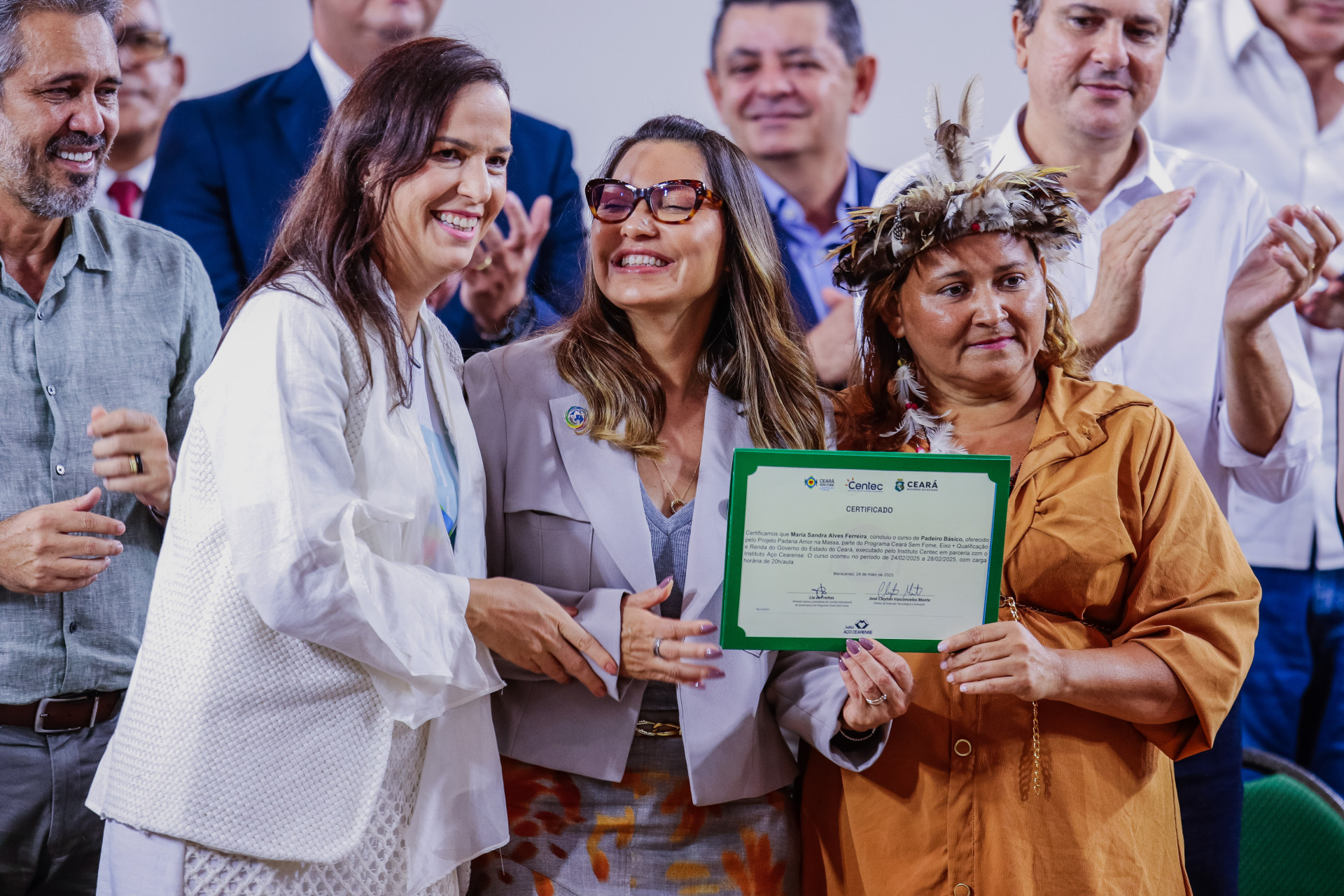 Ouvindo os discursos, estavam centenas de beneficiários que tiveram a vida impactada pelo curso. Entre eles Maria Sandra, 41, da etnia Pitaguary. "Futuramente vou comercializar (o pão), melhorar a renda, até porque onde a gente mora é difícil o acesso à padaria, e a gente fazendo fica melhor pra gente e pras pessoas que vão comprar", diz.