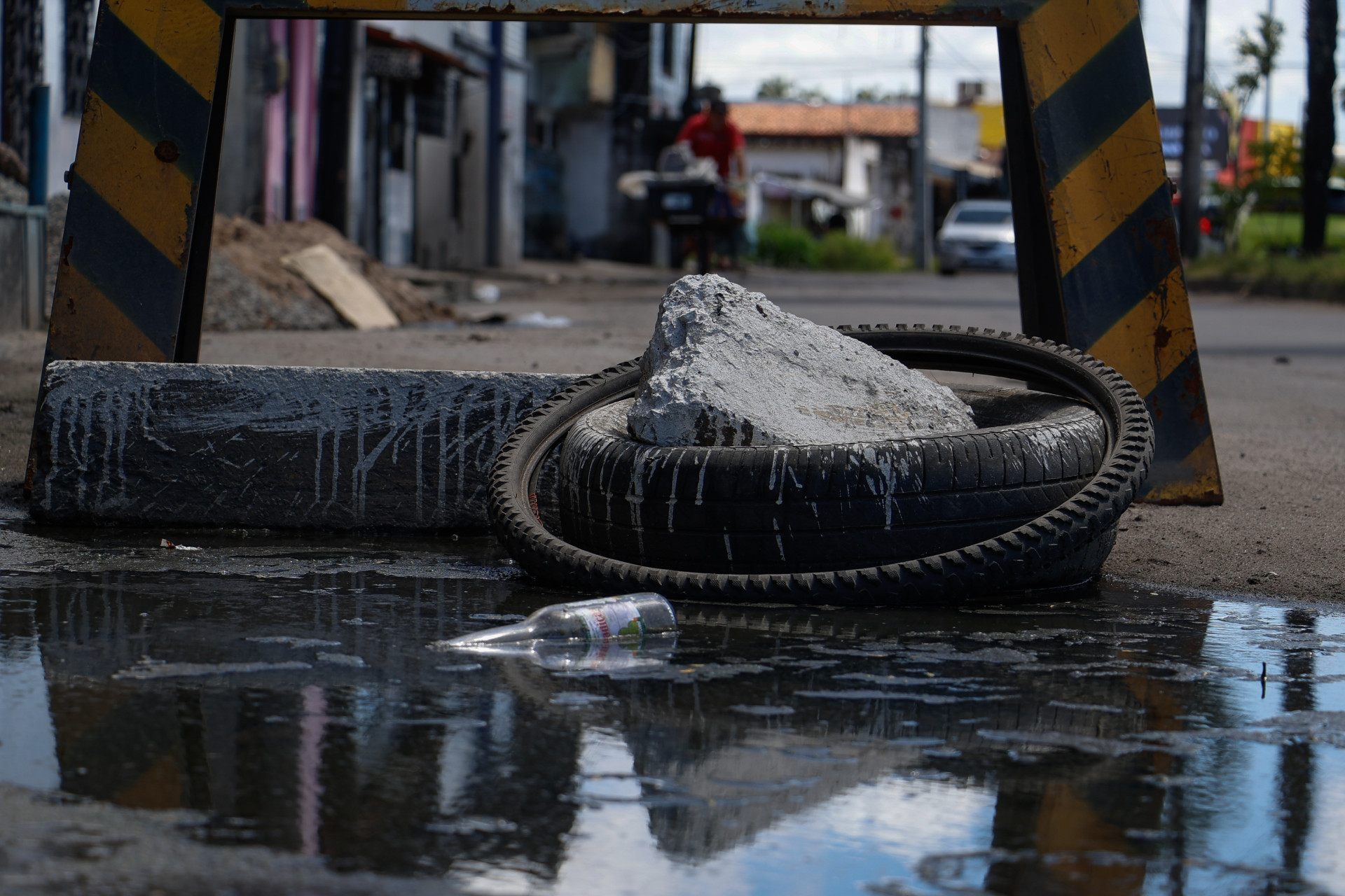 “O serviço terminou e ficou pior do que já era. Tá cheio de buraco, muita água acumulada”, diz Alcilene Araújo, 42, conhecida como Ticinha. “Além disso, essa água parada traz muita muriçoca, rato, é um sufoco dentro de casa”.