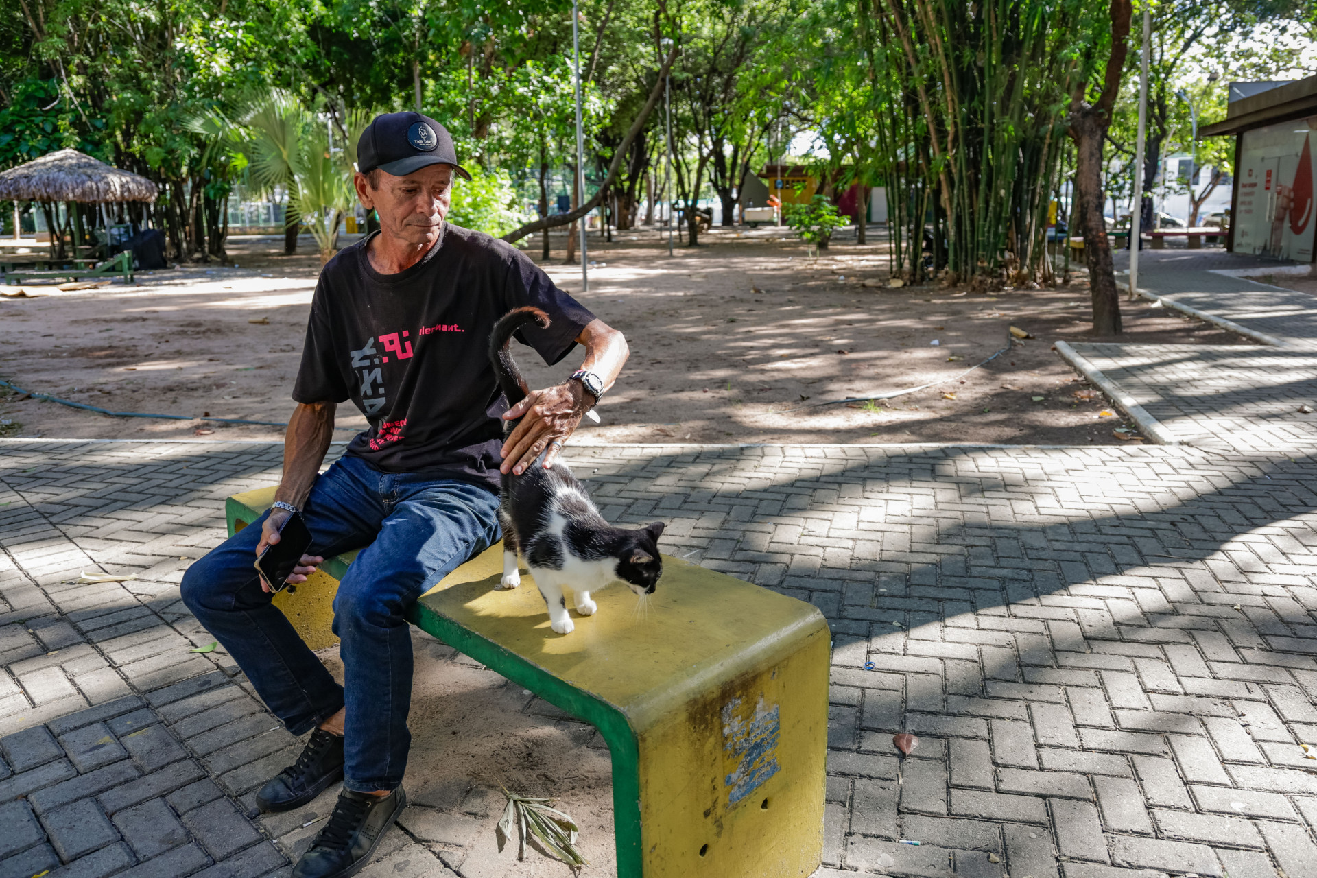“Quando eu comecei a trabalhar aqui, o abandono era muito grande. Já teve época de ter mais de 100 gatos. Hoje, graças ao cuidado e à fiscalização da gente e de outras senhoras que aparecem, o número diminuiu. A gente presta atenção, denuncia quem vem deixar gato aqui”, conta Evenir.