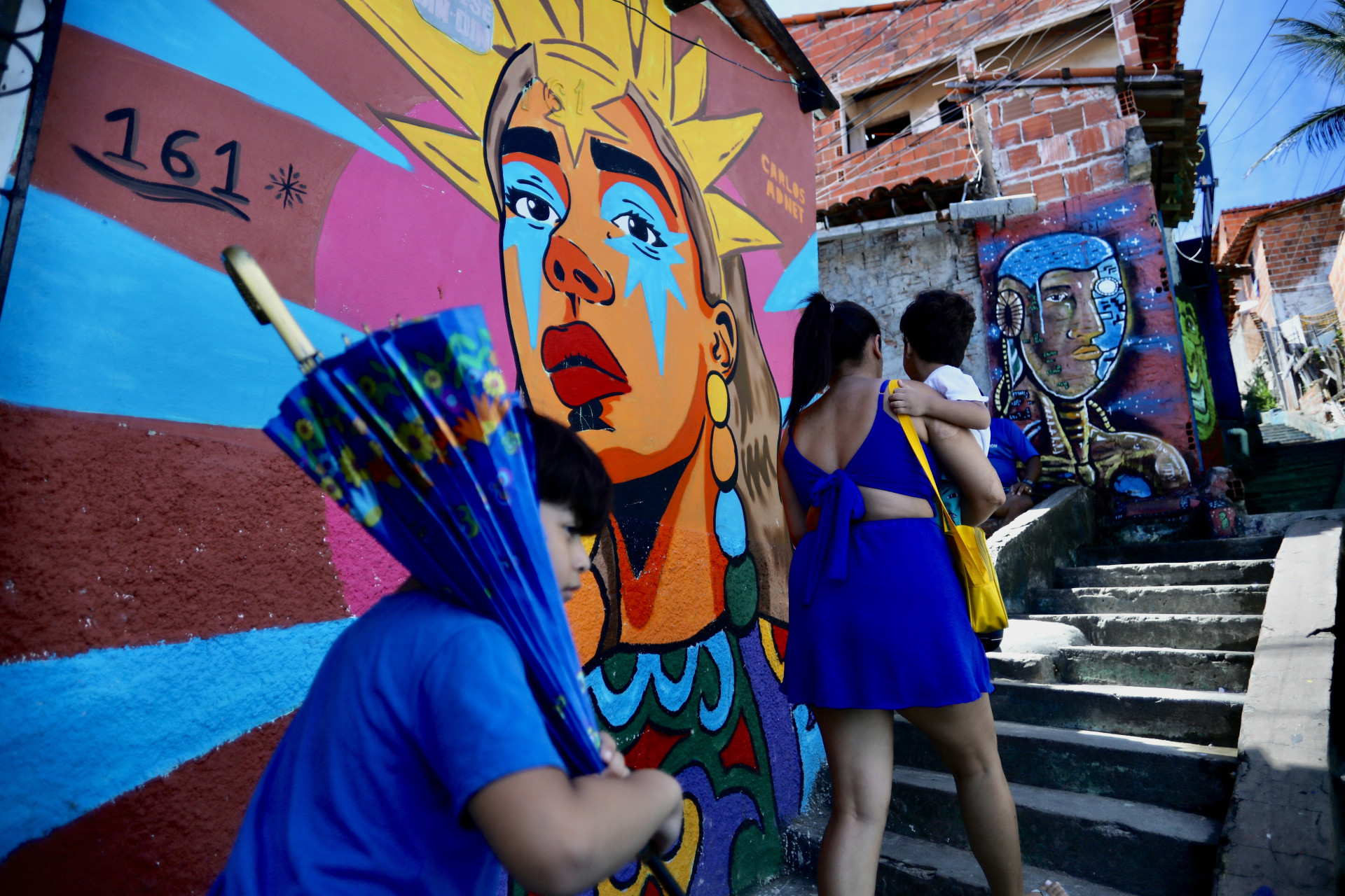 A obra é uma das incontáveis pinturas que compõem a galeria da iniciativa que se propõe a ser o maior museu a céu aberto da América Latina, como explica Márcio Gabriel ‘Pig’. Das 18 escadarias mapeadas pelo projeto, cinco já foram revitalizadas.