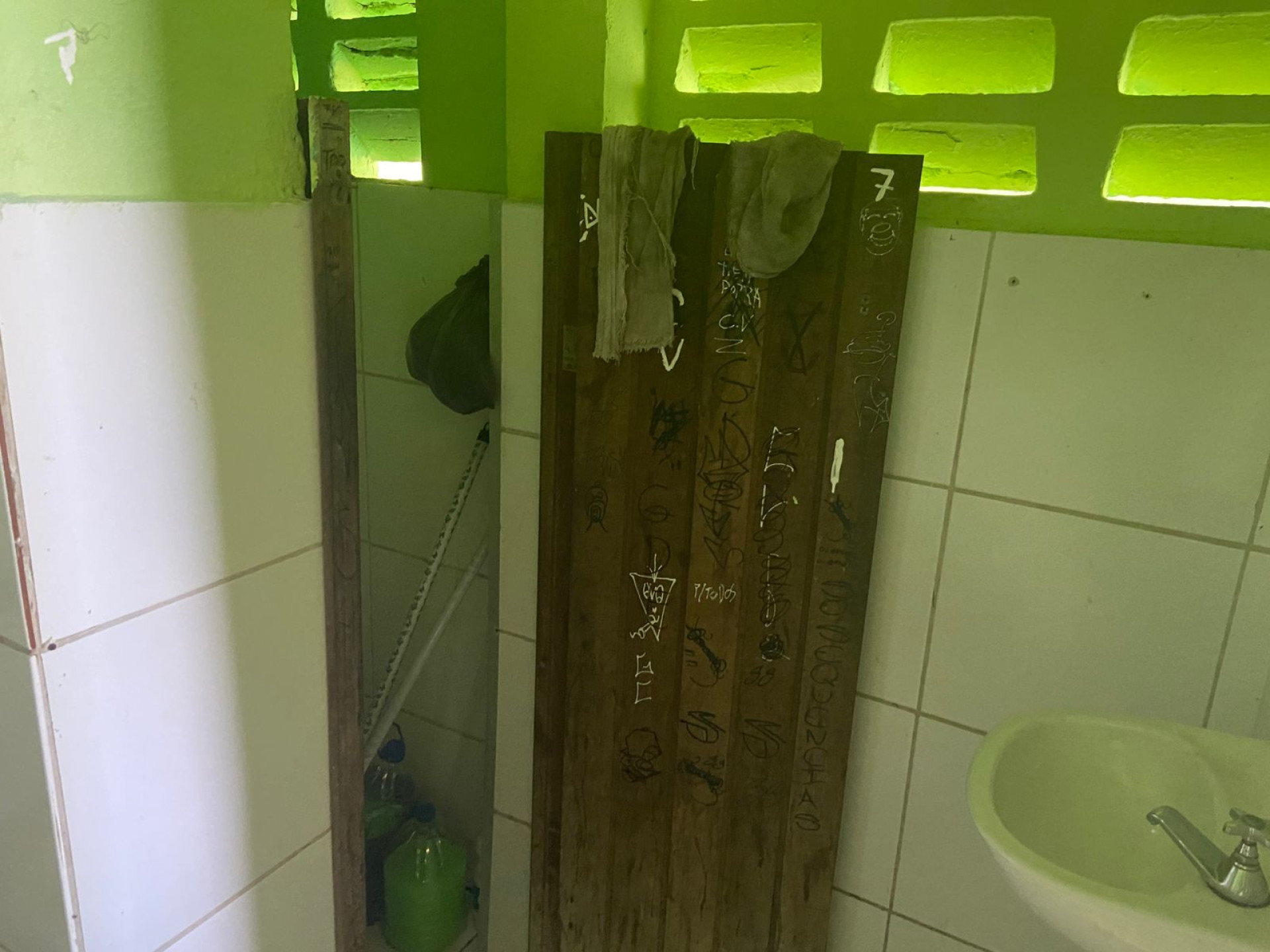 “Na parte da tarde a gente não tem água nos banheiros. Os banheiros femininos até pouco tempo não tinham trincas, o banheiro masculino só tem um sanitário e esse sanitário não funciona. A gente só tem uma sala forrada. A gente não tem laboratório, a gente não tem auditório, a gente não tem aula de educação física porque não tem quadra…”, complementa.
