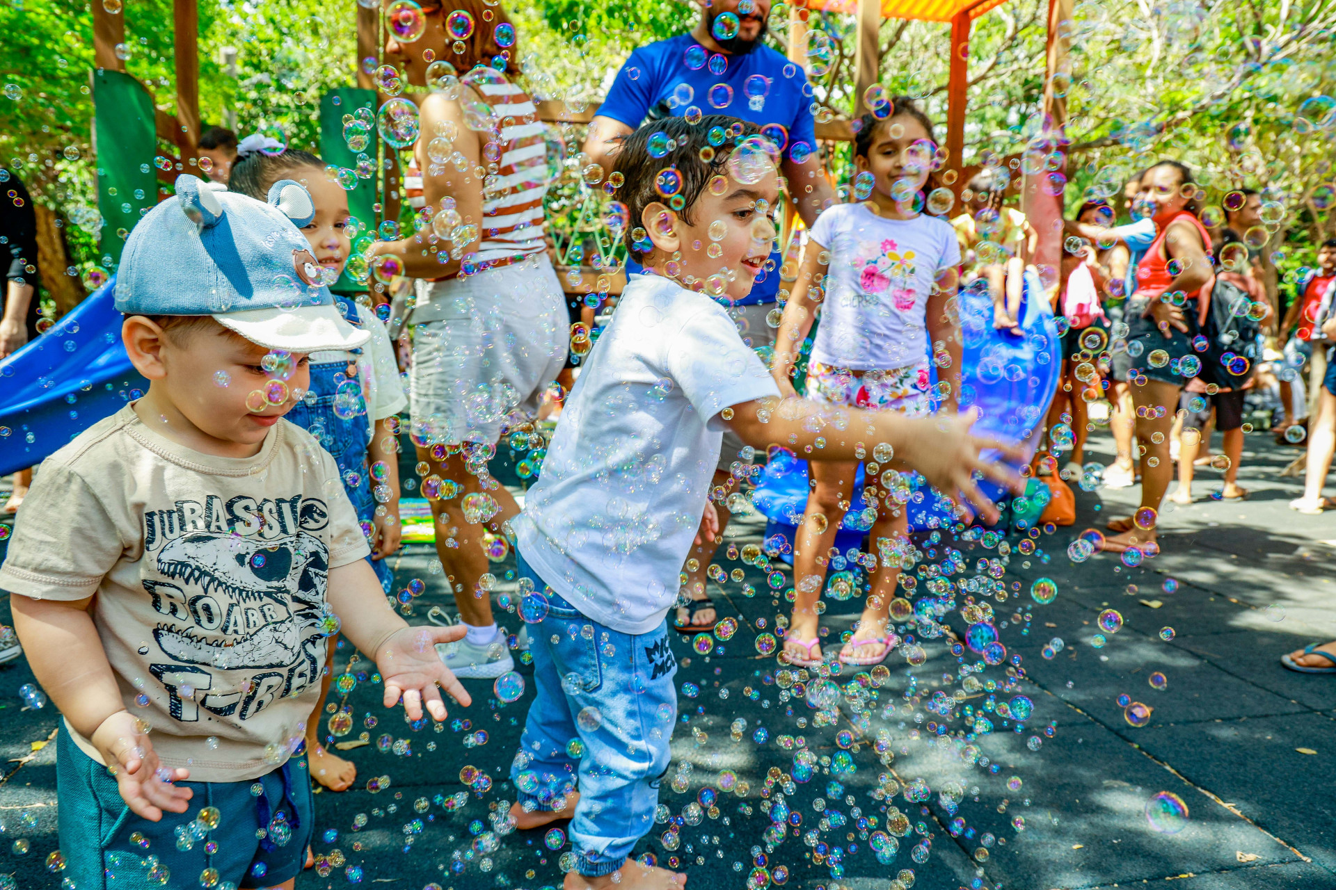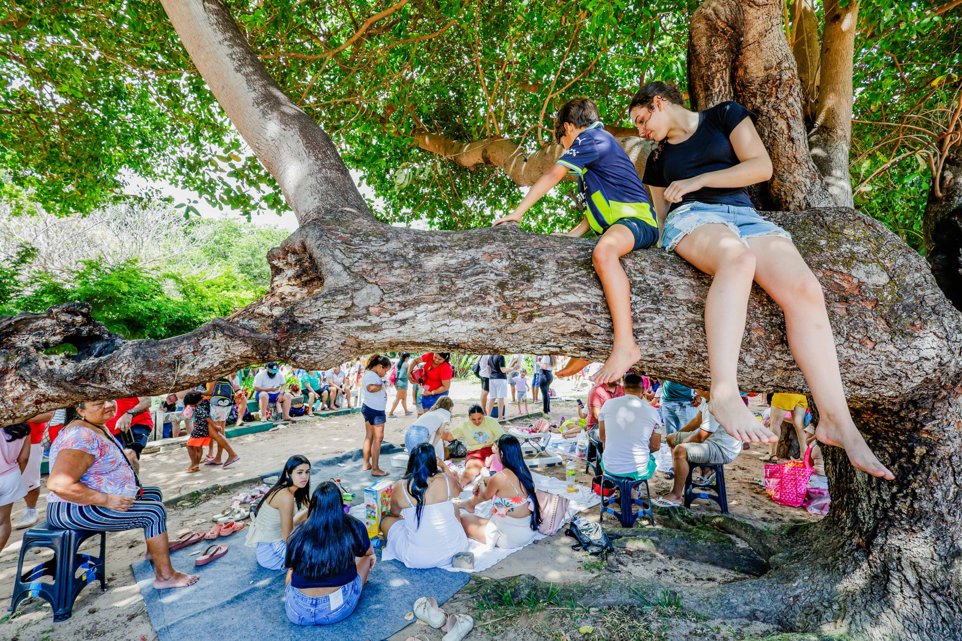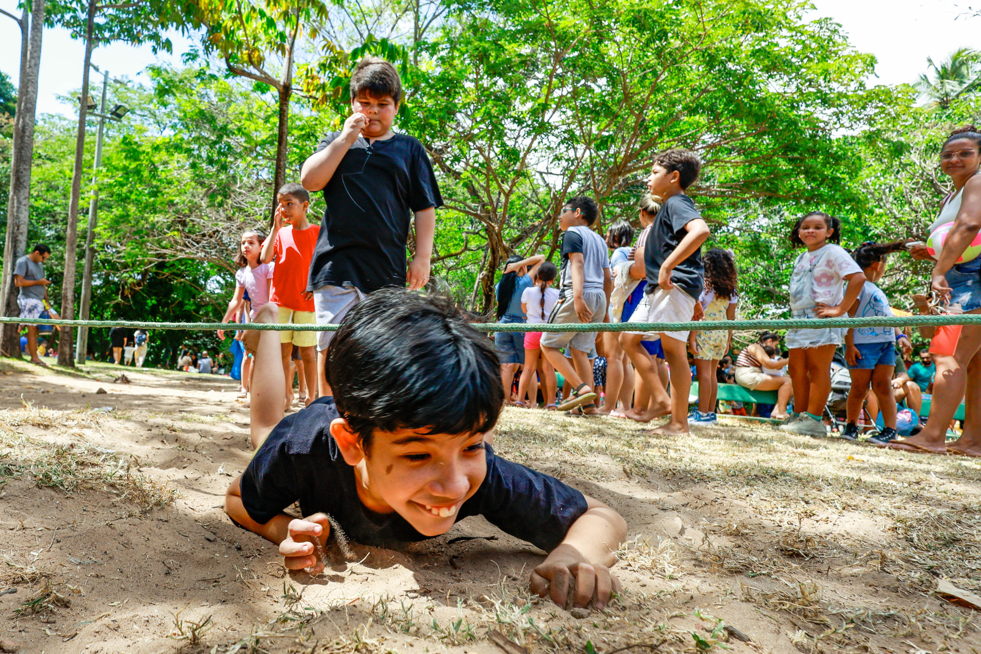 As crianças mais “ousadas” que gostam de aventuras ao ar livre também conversam com O POVO sobre seu interesse no Dia das Crianças: “Gosto de vir aqui porque eu brinco de descer a rampa no pedaço de papelão com meus amigos Caio, Heitor e Lorenzo”, exclamou Davi, de 8 anos. Ele foi ao parque com a mãe Juliana Ferreira e outras 20 pessoas, todas do bairro Passaré.