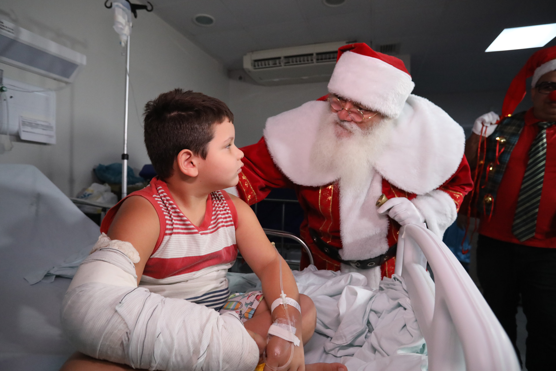 No quarto ao lado, o pequeno Israel Paiva Cavalcante, de um ano e dez meses, não tardou a começar a brincar com os carrinhos que ganhou do Papai Noel. Internado há cerca de seis dias por conta de um acidente, sua mãe, a empreendedora Clarisse Régia Mota, 32, conta que a visita fez com que os dois se sentissem acolhidos.