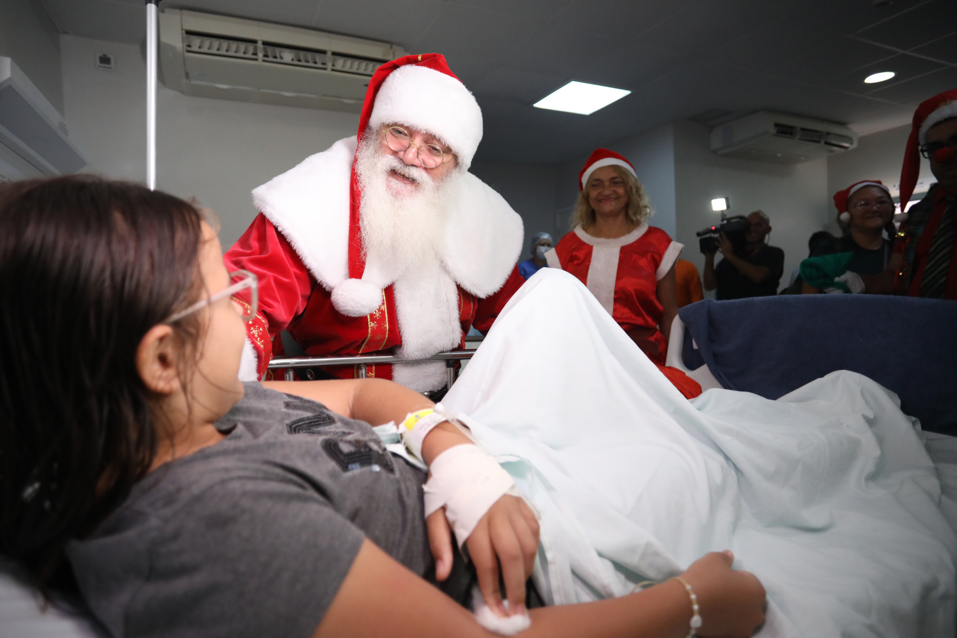 Personagem símbolo do encanto e da magia do Natal, o Papai Noel realizou uma visita às crianças internadas na ala pediátrica do Instituto Doutor José Frota (IJF), em Fortaleza, na manhã desta quinta-feira, 18. A ação contou ainda com a presença de cosplayers de outros personagens, além da distribuição de presentes.