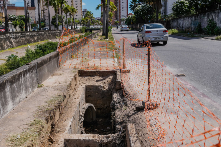 Nesta semana foram iniciadas adequações no sistema de drenagem, raspagem do asfalto e reconstrução das muretas do canal Eduardo Girão, que perderam parte de seus blocos de proteção ao longo da avenida.
