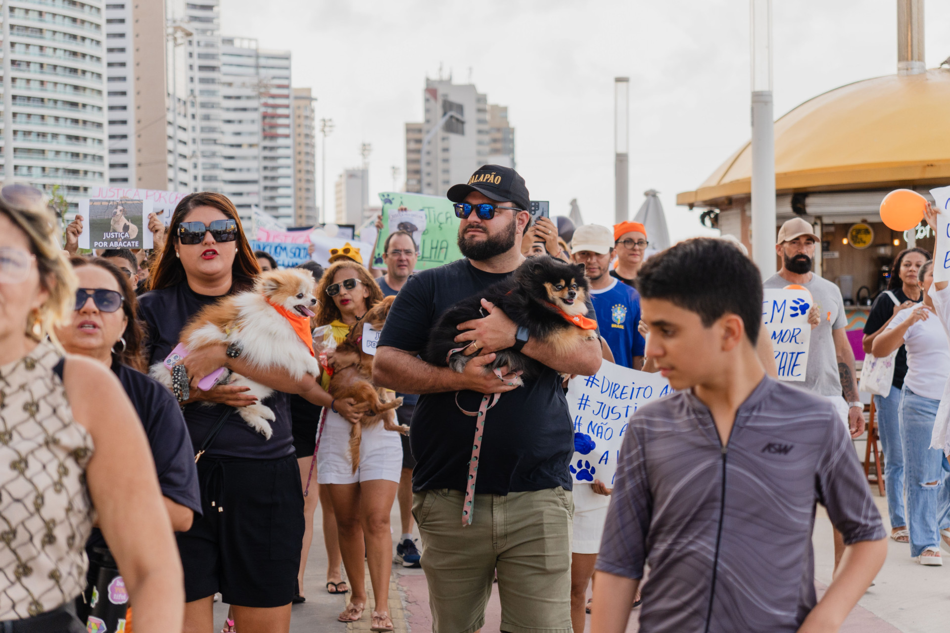 Os manifestantes também exibiam blusas e cartazes durante o percurso, com mensagens cobrando justiça pela morte do animal, além de enfatizar a prática de violência contra animais como crime no Brasil. Frases pedindo o fim do abandono animal também puderam ser vistas.