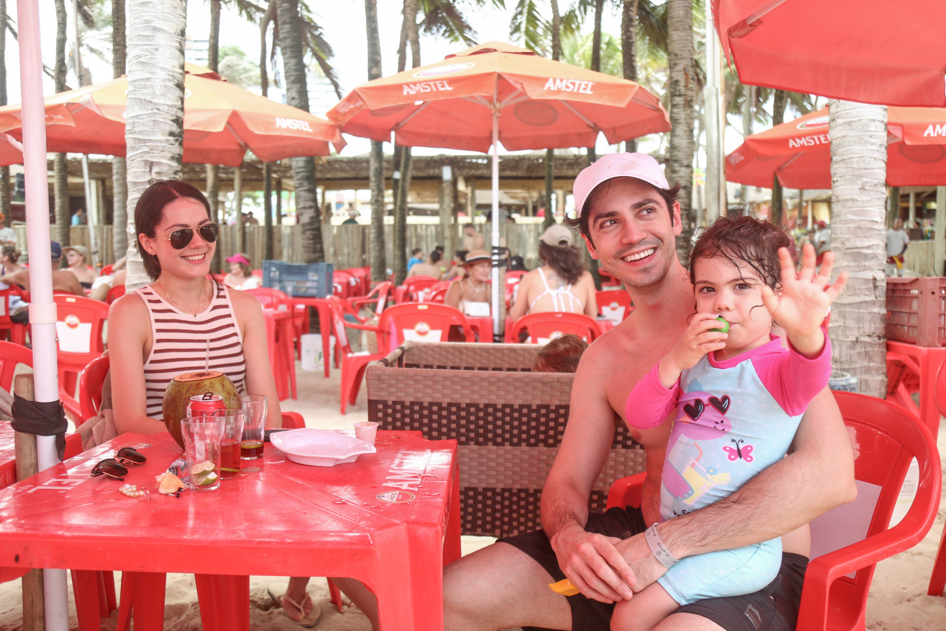 Priscila Aragão, 39, prefere aproveitar a praia na beira do mar. A família montou uma barraca e trouxe cadeiras para que a oficial da Marinha Mercante e o marido Rafael Barra pudessem ficar mais perto do filho, que gosta de ficar na água.