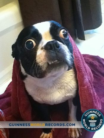 O cão Bruschi (da raça Boston Terrier), foi reconhecido na última semana pelo livro dos recordes “Guinness Book” como o cachorro com maiores olhos do mundo.