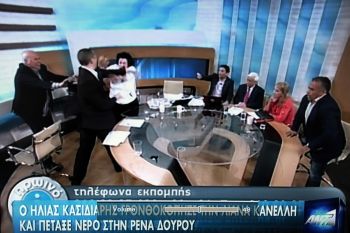 Instantes antes, Kasidiaris havia jogado um copo de água no rosto de outra deputada, Rena Dourou, do partido de esquerda Syriza.