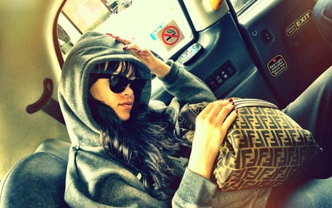 "Percorrendo as ruas desde as 6h. Incêndio no hotel", postou a popstar em sua página no Twitter. Ela também publicou uma imagem no carro e usando uma blusa de capuz.