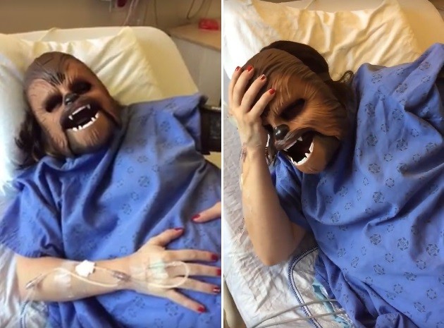 Mulher inicia trabalho de parto usando máscara de Chewbacca