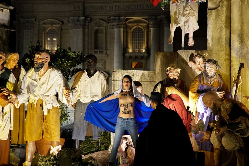Ativista da 'femen' com seios nus invade presépio do Vaticano