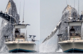 O salto de uma baleia jubarte próximo a um barco de pesca foi registrado por um fotógrafo na Baía de Monterey, Califórnia, nos Estados Unidos. O tamanho da baleia, em comparação com o barco, impressionou o fotógrafo: “A baleia é enorme! Se eu tivesse sido o pescador, provavelmente precisaria de uma nova peça íntima”, relatou ele, animado. As informações são da Fox News.