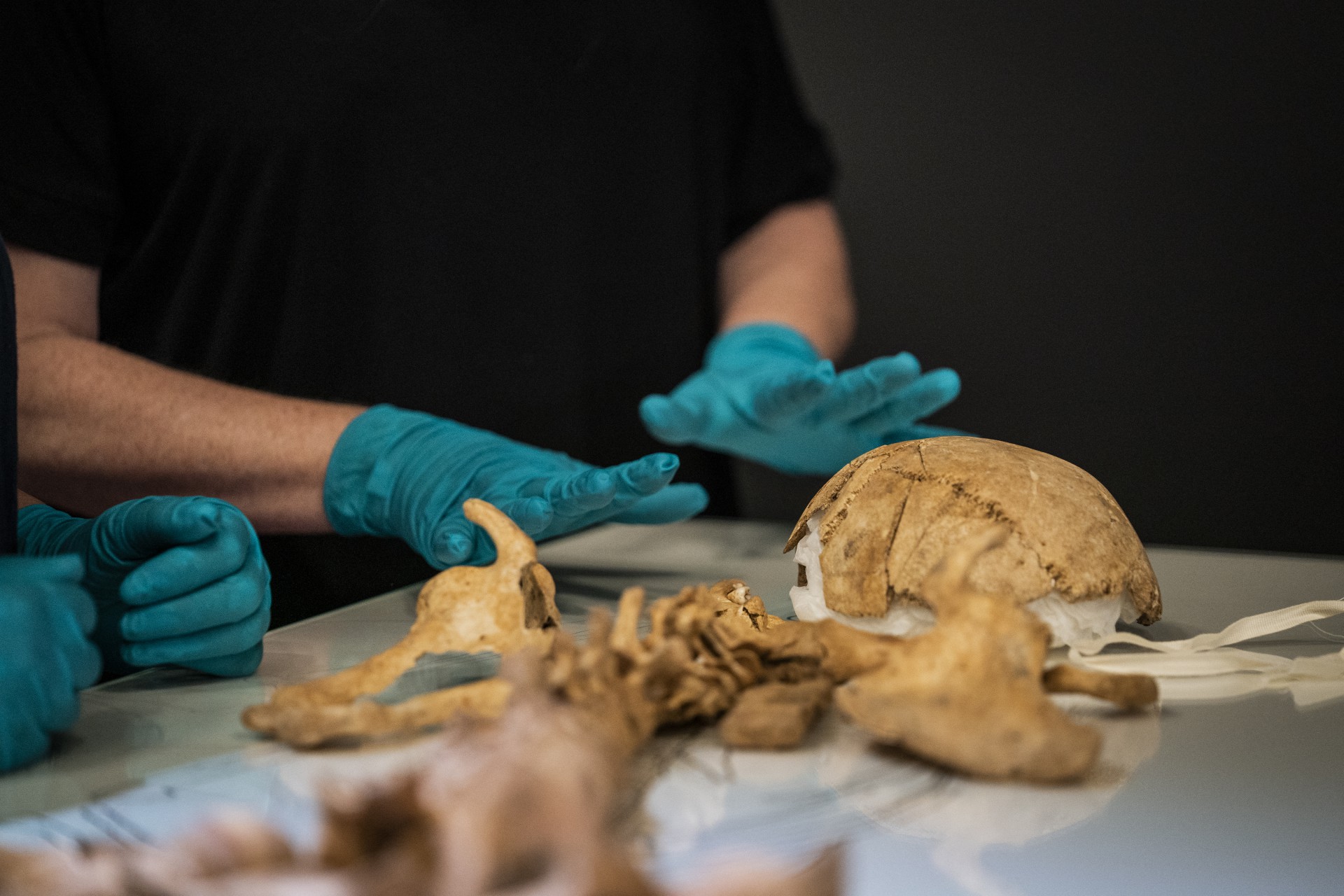 Ao longo de duas horas, dois de seus colegas reconstruíram o esqueleto de um homem na casa dos 20 anos, a partir de cerca de 150 ossos emprestados pelo Museu de Oxfordshire por três anos.