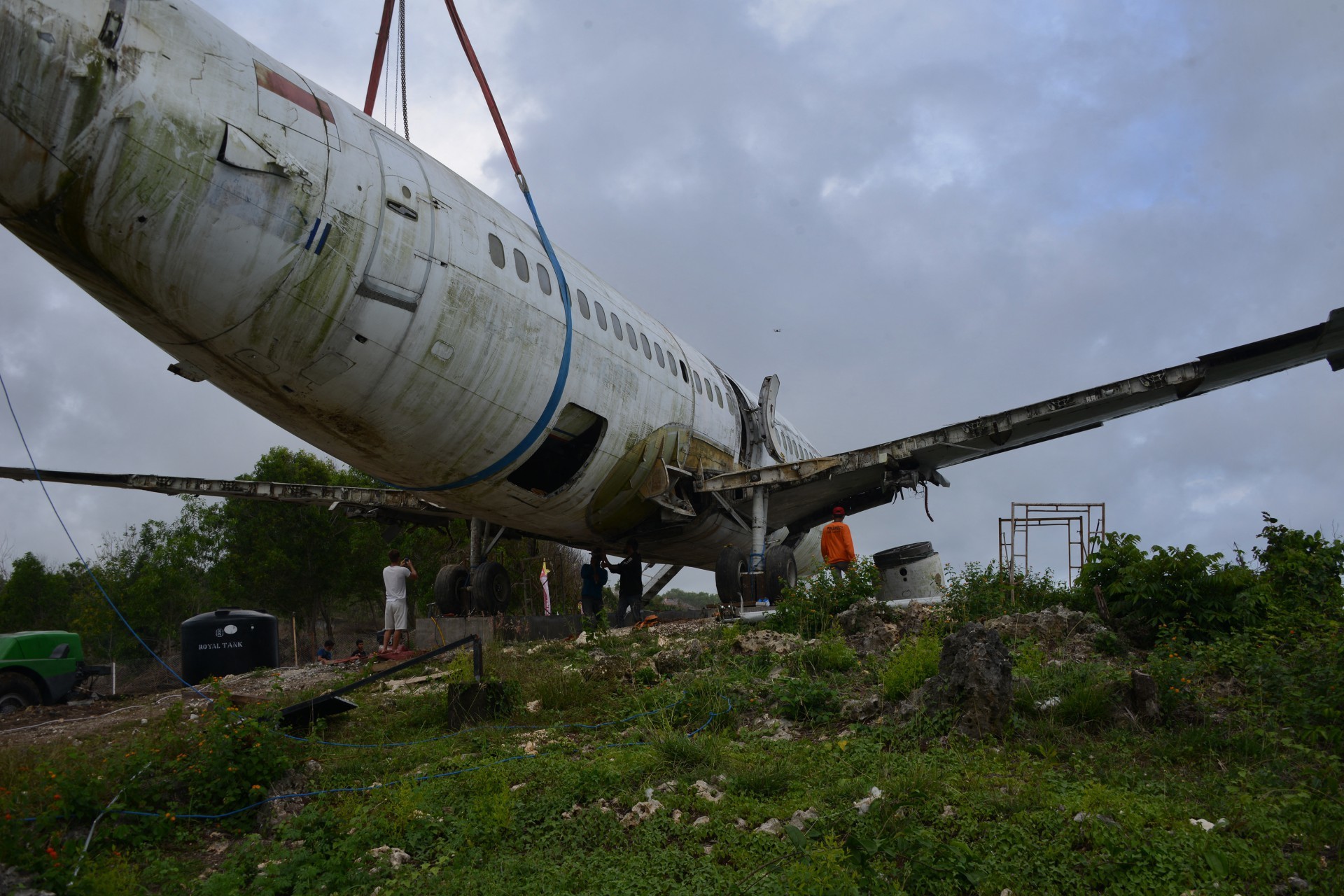 Um empresário colocou a fuselagem de um Boeing no topo de um penhasco no sul de Bali para voltar a atrair turistas para esta ilha indonésia, ausentes desde o início da pandemia da covid-19.