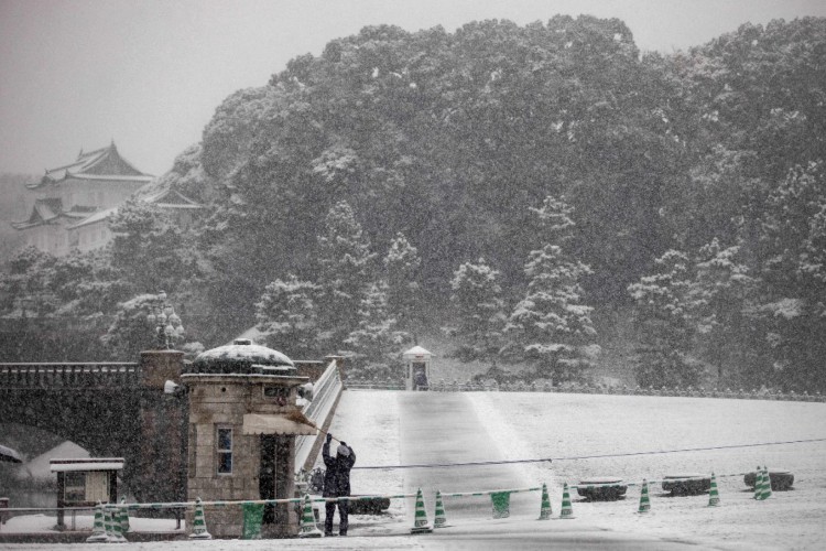 Nevasca incomum em Tóquio cobre santuários e força o cancelamento de voos