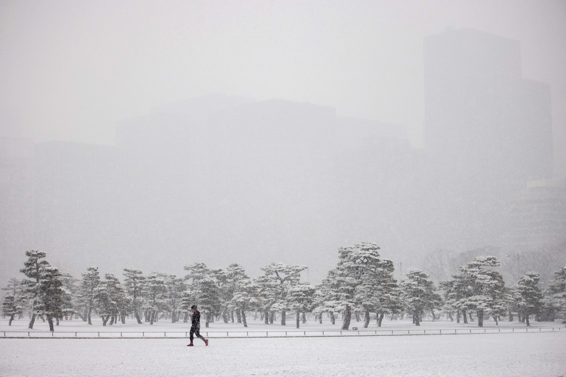 A neve cobriu Tóquio nesta quinta-feira(6) após horas de rajadas que forçaram o cancelamento de mais de 100 voos locais e a emissão de um sinal de alerta.