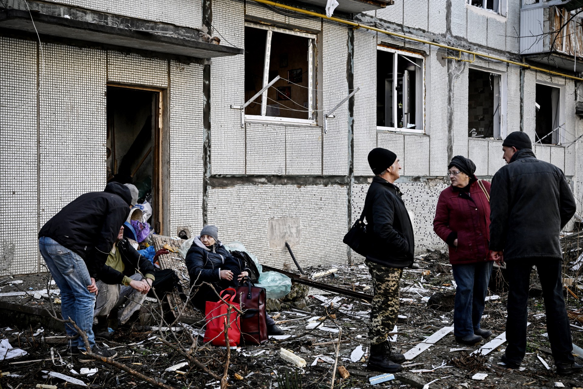 Sergei, de 67 anos, sofreu algumas contusões durante o bombardeio e agora tenta cobrir as janelas do andar térreo de seu apartamento com uma mesa. "Vou ficar aqui. Minha filha está em Kiev e lá está parecido", relata este ucraniano, referindo-se às explosões registradas durante a manhã nas principais cidades do país, incluindo a capital.