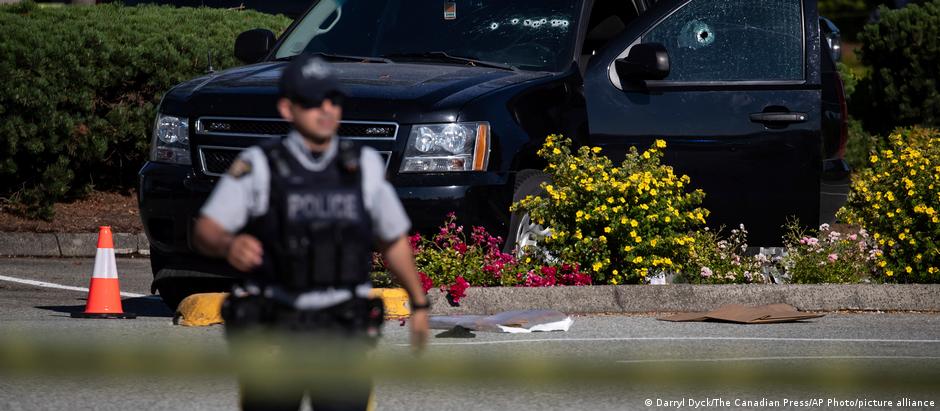 Atirador matou ao menos dois e feriu outros dois antes de ser morto pela polícia em Langley, perto de Vancouver. Relatos iniciais afirmam que ele mirava moradores de rua, o que ainda não foi confirmado pelas autoridades.Um atirador deixou dois mortos e dois feridos após perpetrar uma série de ataques nesta segunda-feira (25/07) no sudoeste do Canadá, antes de ser morto a tiros pela polícia. Relatos anteriores sugeriram que o agressor teria como alvo moradores de rua, mas a informação não foi imediatamente confirmada pelas autoridades de Langley, uma cidade de 130 mil habitantes a cerca de uma hora de Vancouver. "Posso confirmar que quatro pessoas foram baleadas pelo que se acredita ser um único atirador", disse o chefe de polícia de Langley, Ghalib Bhayani, em entrevista coletiva. "Ainda estamos investigando para determinar se o atirador agiu sozinho. Enquanto a investigação estiver em andamento, todas as indicações são de que não há mais ninguém envolvido e que não há mais ameaça à segurança pública." Dois homens foram encontrados sem vida, e um homem e uma mulher ficaram feridos. Segundo as autoridades, a mulher está em estado crítico no hospital. Bhayani disse que as autoridades ainda estão trabalhando para identificar as vítimas e o suspeito, bem como para estabelecer se há alguma conexão entre eles. "No momento, estamos determinando a natureza exata de quem são essas pessoas, e não podemos confirmar que elas [as vítimas] são de fato moradoras de rua", declarou o investigador de homicídios David Lee. A polícia informou ainda que o agressor estava ferido quando foi localizado pelos policiais e que em seguida foi morto a tiros no local pelos agentes. Os ataques a tiros teriam ocorrido em pelo menos cinco lugares diferentes em Langley. A polícia chegou a pedir que a população evitasse diversas áreas, incluindo o estacionamento de um cassino e um ponto de ônibus. As autoridades emitiram um alerta de emergência sobre vários disparos envolvendo "vítimas transitórias", o que levou a sugestões de que as vítimas seriam moradoras de rua. O alerta descrevia o suspeito como um homem branco de macacão e camisa camuflada estilo militar. Ataques no Canadá Ataques com múltiplos disparos são muito menos comuns no Canadá do que nos Estados Unidos. O país tem leis de armas mais rígidas do que seu vizinho do sul, mas os canadenses ainda podem obter armas de fogo desde que tenham uma licença. O maior massacre do tipo do Canadá ocorreu em 2020, quando um agressor dirigindo um carro falso de polícia matou 23 pessoas, algumas a tiros e outras em incêndios criminosos, na pequena cidade costeira de Portapique. Embora a taxa de homicídios por armas de fogo no país seja menos que um quinto da taxa dos EUA, ela ainda é maior do que a de outros países ricos e vem aumentando, de acordo com o departamento governamental de estatísticas. Em maio, o governo canadense apresentou um pacote de leis de controle de armas que inclui, entre outros pontos, a proibição de venda e compra de revólveres e a suspensão da licença de porte de arma dos envolvidos em violência doméstica. O projeto de lei, que ressuscita algumas medidas que foram arquivadas no ano passado em meio às eleições nacionais, surgiu apenas uma semana depois que um atirador matou 19 crianças e dois professores em uma escola primária em Uvalde, no estado americano do Texas. ek (AFP, Reuters)