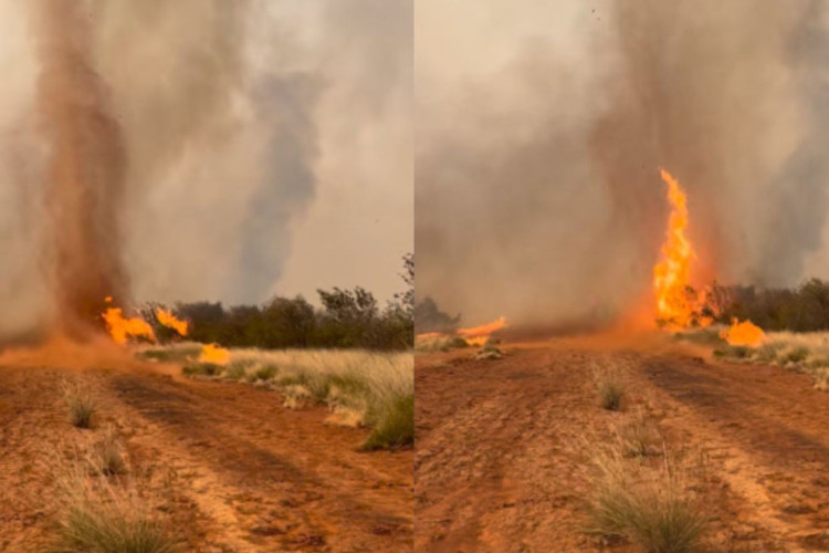Um tornado de fogo que atingiu uma fazenda na Austrália chamou a atenção nas últimas semanas em redes sociais. Nas imagens, é possível ver o momento que um funil de chamas e fumaça se forma sobre a vegetação do local.