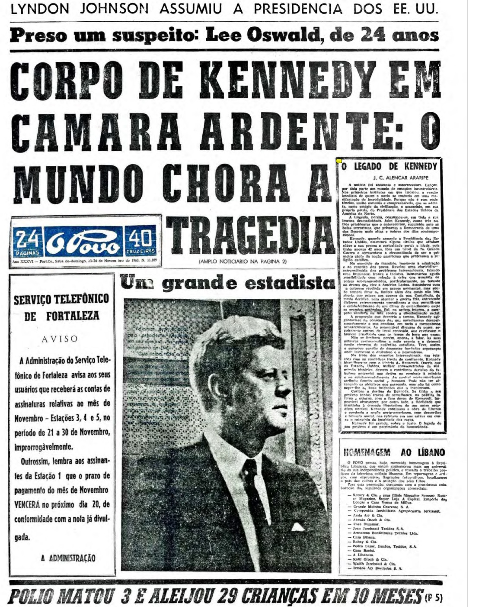 - John F. Kennedy, em 22 de novembro de 1963, assassinado por Lee Harvey Oswald quando se deslocava em carro aberto em Dallas, no Texas.