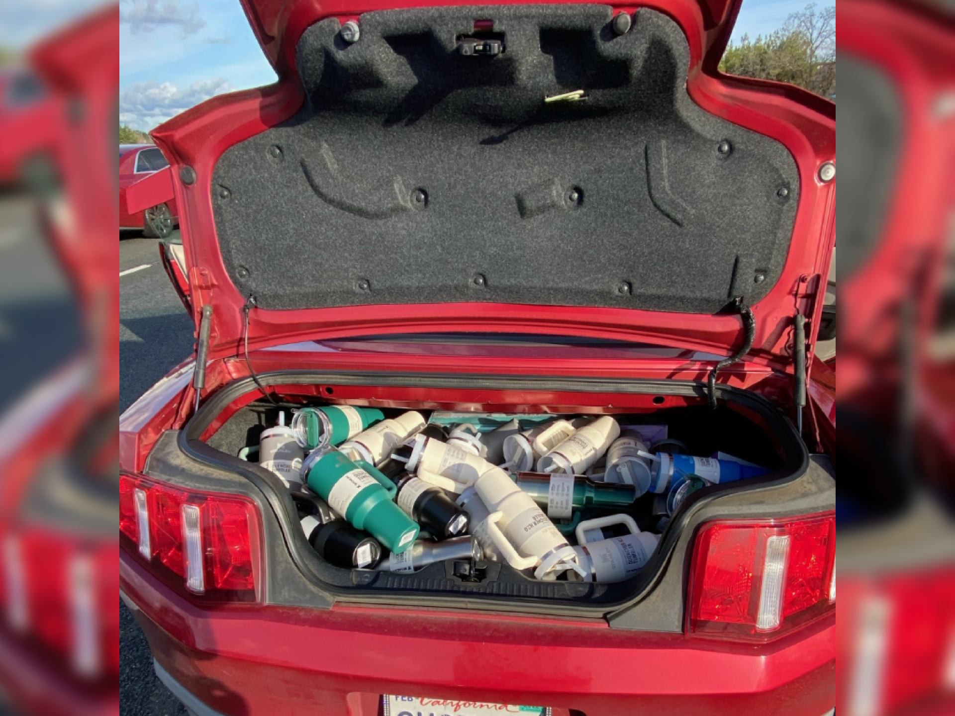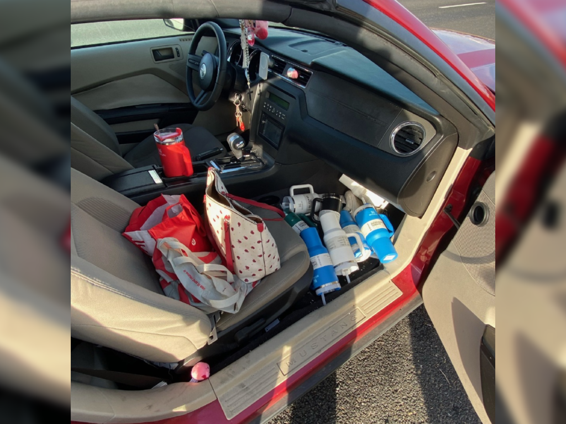 A suspeita foi detida em uma rodovia local e as autoridades policiais conseguiram recuperar os copos furtados, que estavam dentro do porta-malas e no banco do passageiro do carro em que a suspeita dirigia.
