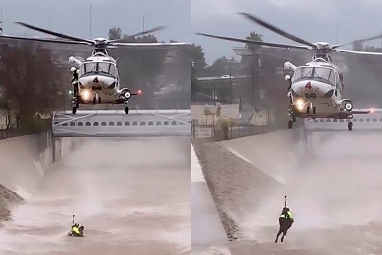 O Corpo de Bombeiros de Los Angeles enviou um helicóptero para o resgate do homem e montou uma operação de suporte com socorristas e pontos de apoio ao longo do percurso do rio.