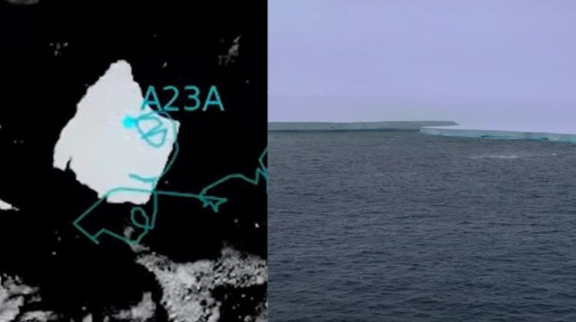 O A23a se desprendeu da plataforma de gelo Filchner, na Antártida, em 1986, e permaneceu encalhado no fundo do mar de Weddell por mais de 30 anos antes de começar sua lenta jornada para o norte.