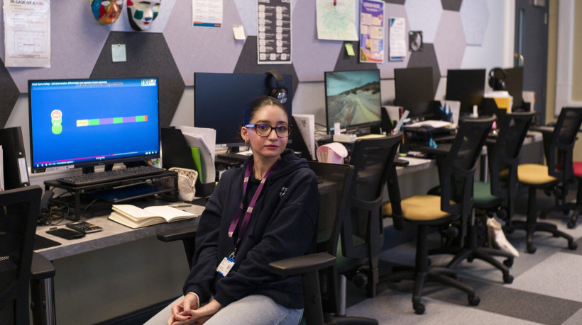 Até o momento, sete estudantes do ensino médio participam do projeto piloto. Em uma pequena sala de aula, eles têm acesso a computadores para acessar o programa.
