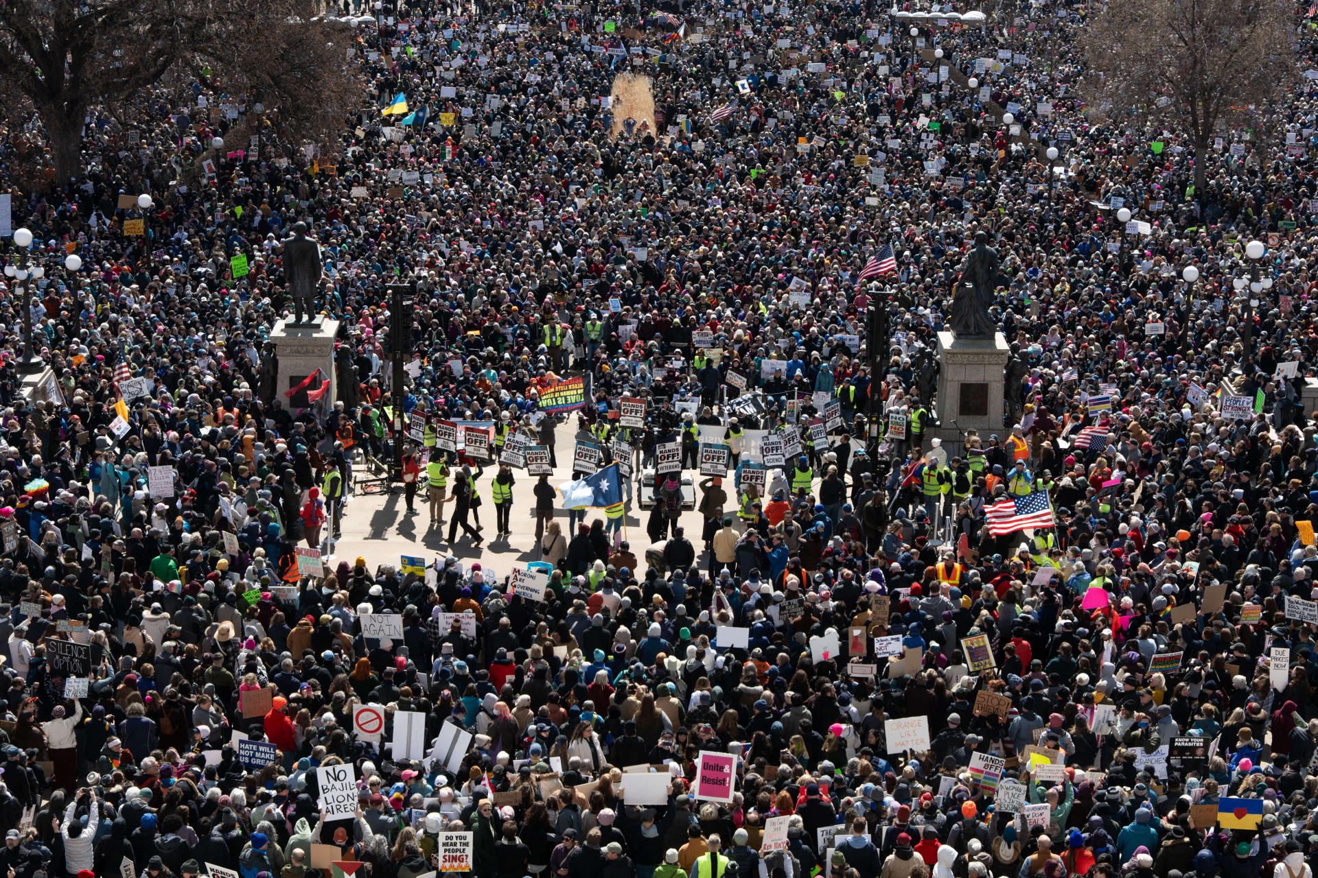 Mais de 1.200 manifestações "Hands Off!" foram planejadas por mais de 150 grupos, incluindo organizações de direitos civis, sindicatos, defensores LGBTQ+, veteranos e ativistas eleitorais.