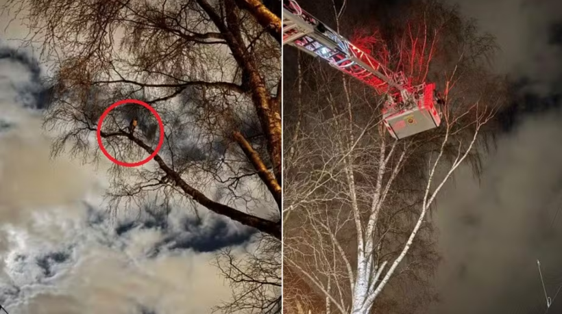 A arara ficou por horas sentada sobre um galho estreito da árvore a uma altura de cerca de 7 metros Crédito: Reprodução/Räddningstjänsten Storgöteborg