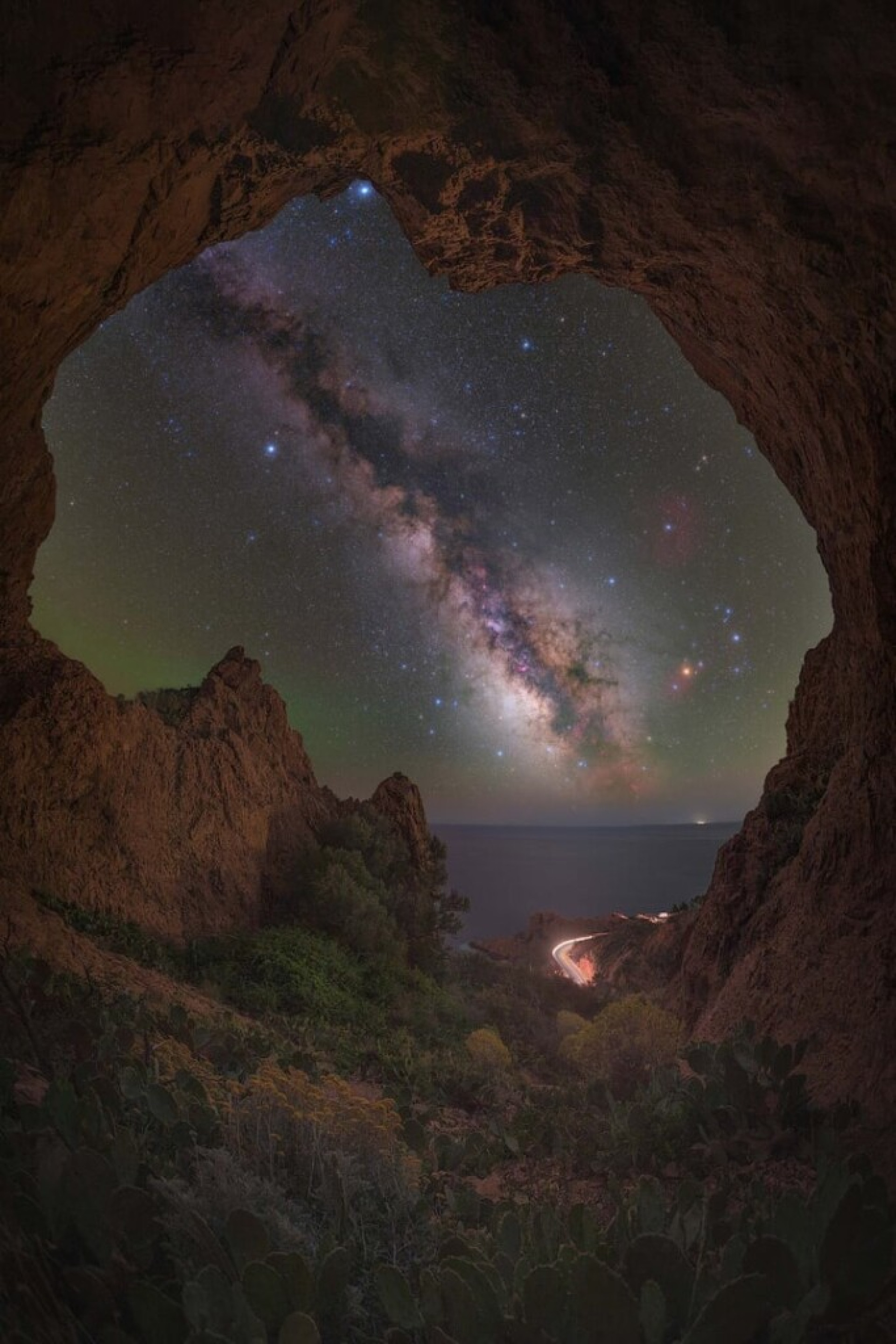 Uma noite cheia de cores foi registrada por Brent Matin em Great Ocean Road, na Austrália, em que o cometa C/2024 G3 Atlas e uma aurora rosa no céu foram seguidos pela aparição da Via Láctea.