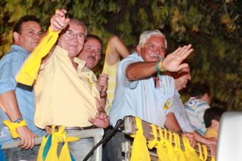Ele desfilou junto com o candidato em carro aberto. A manifestação pró-Macêdo começou por volta das 19 horas deste sábado e continuou com fogos e musica alta. Por volta das 21 horas, o ato ainda tinha prosseguimento. A carreata, que seguia por artérias de menor movimento, estava prevista para terminar na Praça Padre Cicero no Centro.
