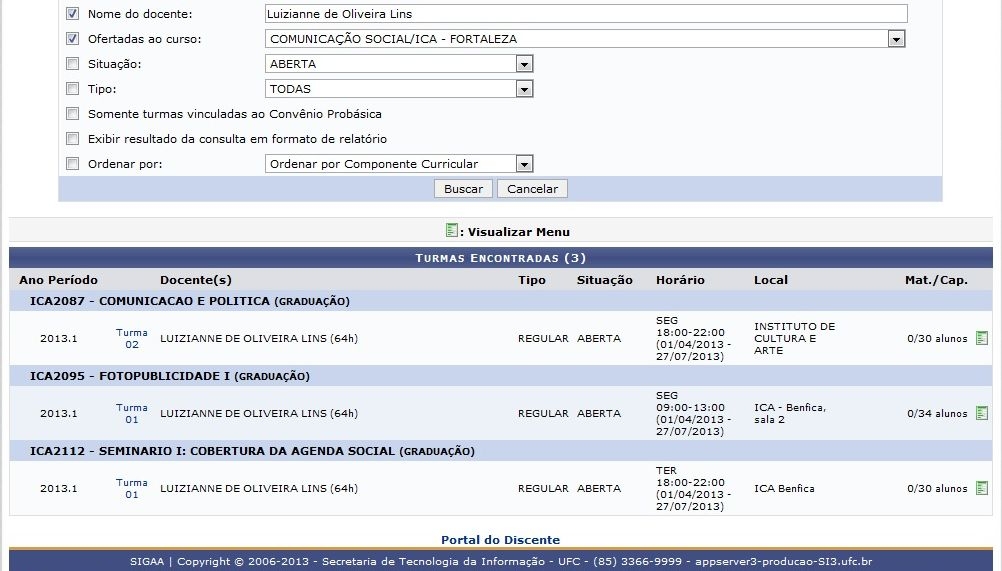 Foram anunciadas ontem, 13, as disciplinas que a ex-prefeita Luizianne Lins (PT) irá ministrar no curso de Comunicação Social da Universidade Federal do Ceará (UFC). O novo semestre letivo da instituição de ensino superior começa no próximo dia 1º de abril.