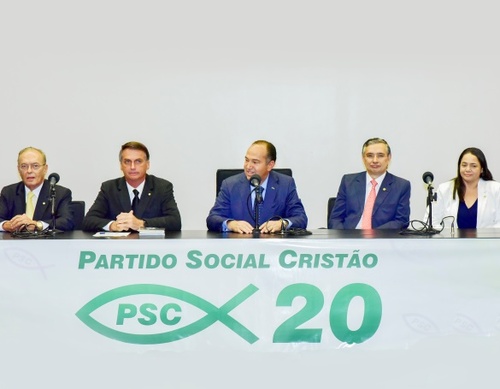 O deputado federal pelo Rio de Janeiro Jair Bolsonaro confirmou filiação ao Partido Social Cristão (PSC) nesta quarta-feira, 3, durante evento realizado no auditório Nereu Ramos, da Câmara dos Deputados, em Brasília (DF). No evento, o partido também confirmou Bolsonaro como pré-candidato à presidência da República nas eleições de 2018. Os filhos Carlos e Flávio Bolsonaro também se filiaram ao PSC.