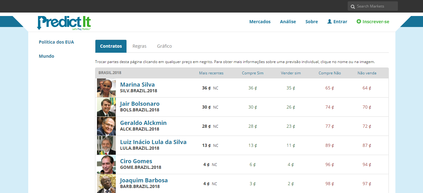 De acordo com o pesquisador Ivan Roberto Ferraz, que desenvolveu um trabalho sobre o tema na Faculdade de Economia e Administração da USP (FEA), em teoria, o resultado do mercado preditivo seria mais confiável do que as pesquisas tradicionais pois envolve investimento financeiro.