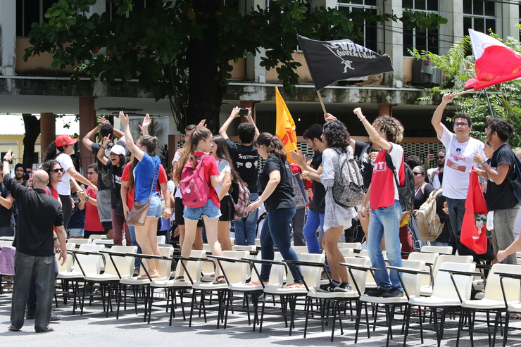 Estudantes e integrantes de movimentos sociais fecharam a Avenida da Universidade, em frente ao Centro de Humanidades da Universidade Federal do Ceará. Cerca de 100 manifestantes usaram cadeiras para bloquear o trânsito da via. Eles protestam contra a prisão do ex-presidente Lula. Além desse protesto, mais nove ocorrerão hoje em diferentes pontos do estado, de acordo com o Partido dos Trabalhadores (PT) no Ceará.