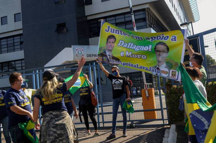 Durante o depoimento de Moro, grupos de manifestantes pró-governo e a favor do ex-ministro se concentraram na entrada do prédio da PF. Dezenas de bolsonaristas chamaram o ex-ministro de "rato" e "Judas" - a mesma comparação utilizada por Bolsonaro nas redes sociais