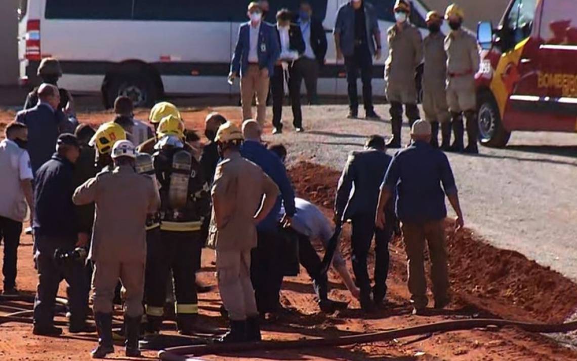 O presidente Jair Bolsonaro (sem partido) inaugurou um hospital de campanha em Águas Lindas de Goiás, no entorno do Distrito Federal, nesta sexta-feira, 5. A obra foi anunciada no dia 7 de abril e concluída de 23 do mesmo mês. Porém, ela só foi transferida para a gestão municipal um mês depois. Bolsonaro não usava máscara e caiu ao tropeçar em uma mangueira enquanto se dirigia para o local da cerimônia. As informações são do portal G1.